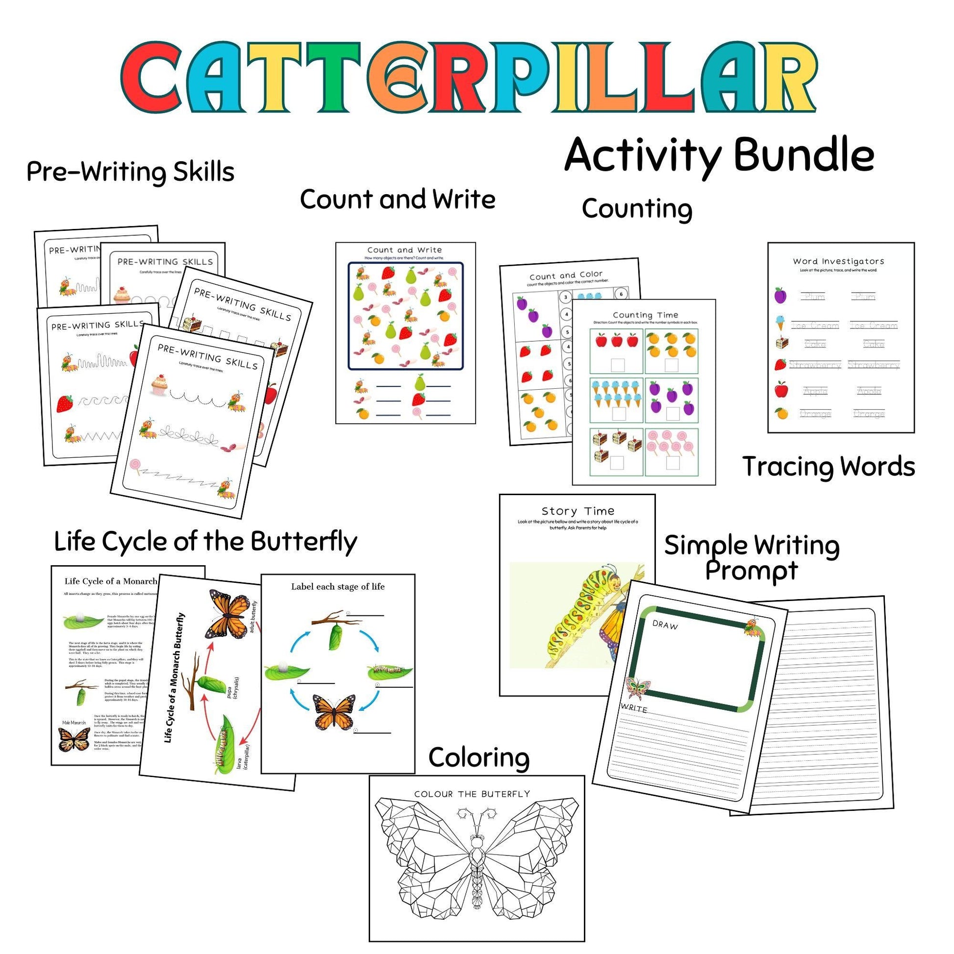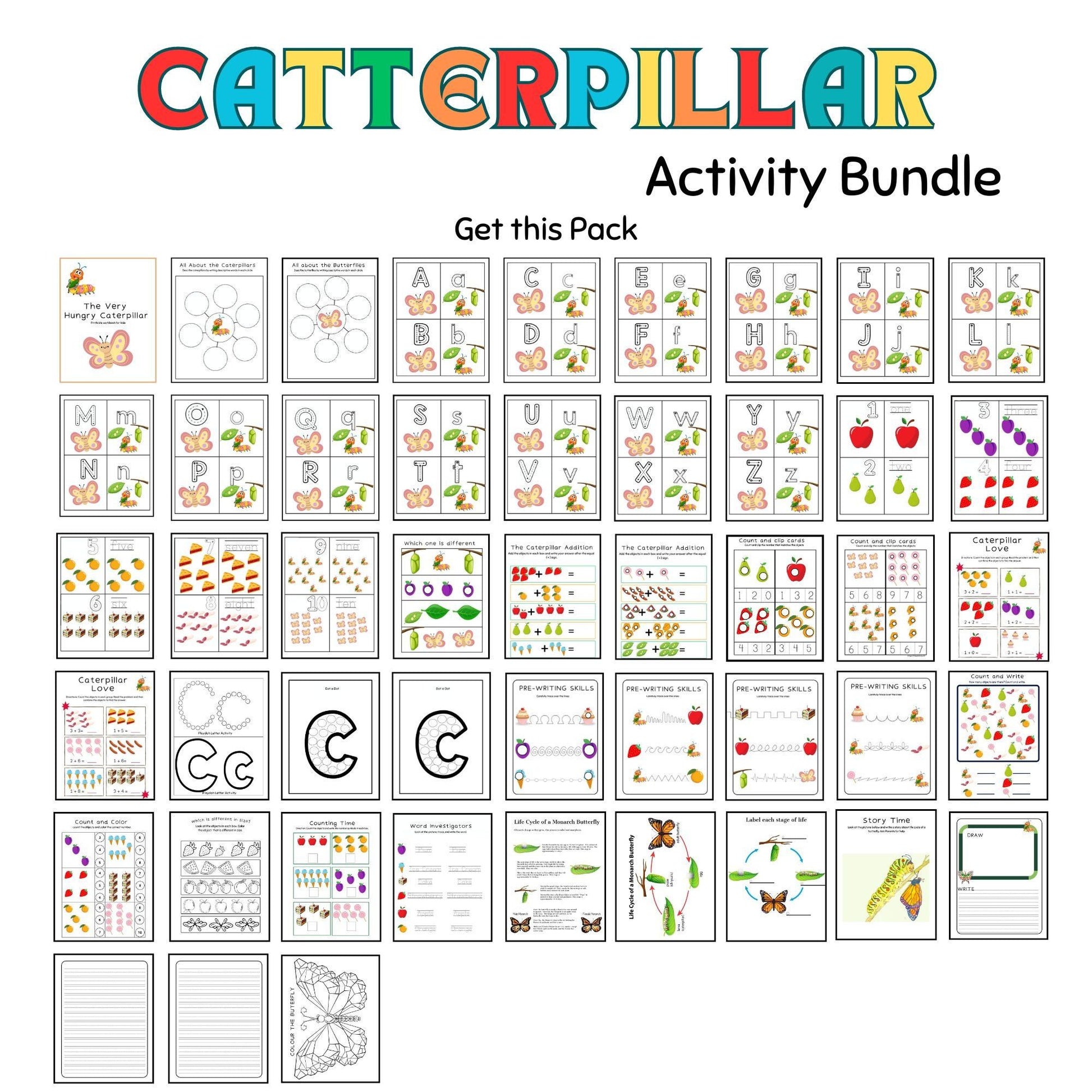 Caterpillar Theme Learning Pack for Preschool & Kindergarten | Printable Literacy & Math Activities | Very Hungry Caterpillar Worksheets