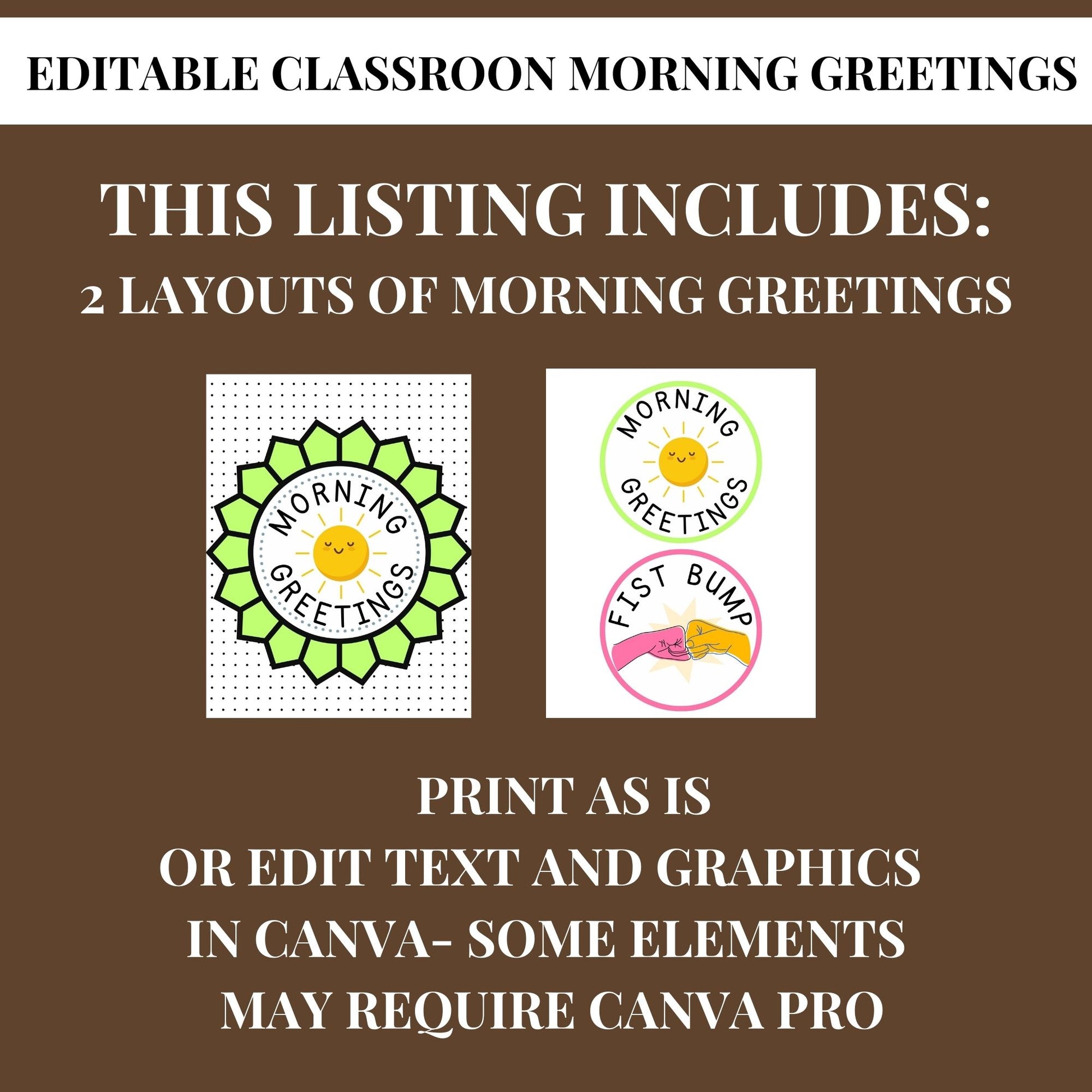 Looking for a way to add some fun and excitement to your morning routine? Look no further than Morning Greetings Classroom! This unique product is designed to help you create a cheerful and welcoming atmosphere in your classroom. From colorful posters to inspirational wall decor, this product has everything you need to set the tone for a great day. Not to mention, it's also a great way to show your students that you care about them. Buy Morning Greetings Classroom today and start creating a wonderful morning routine for your class!
