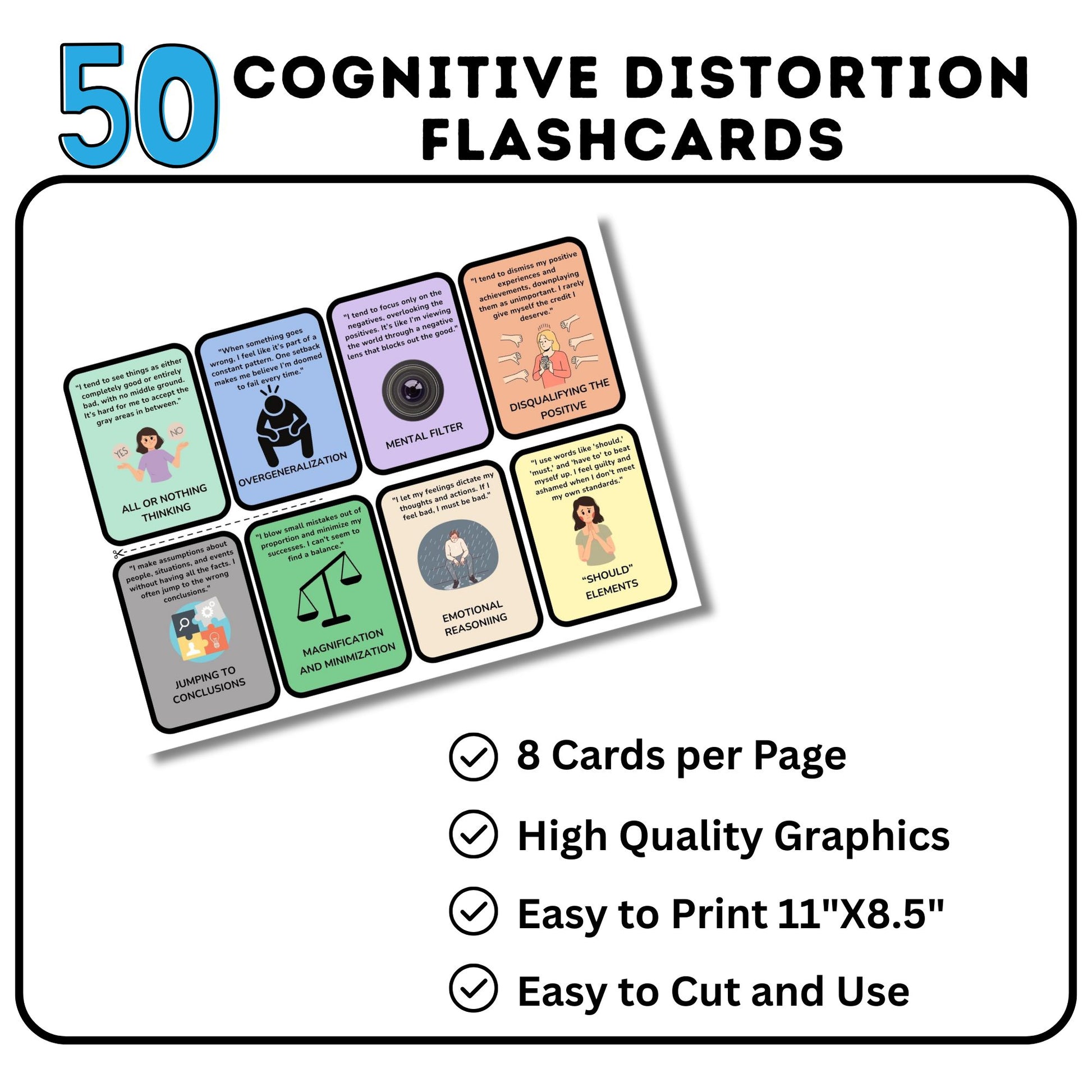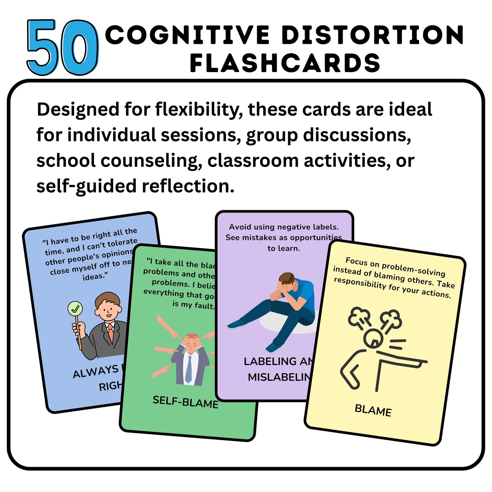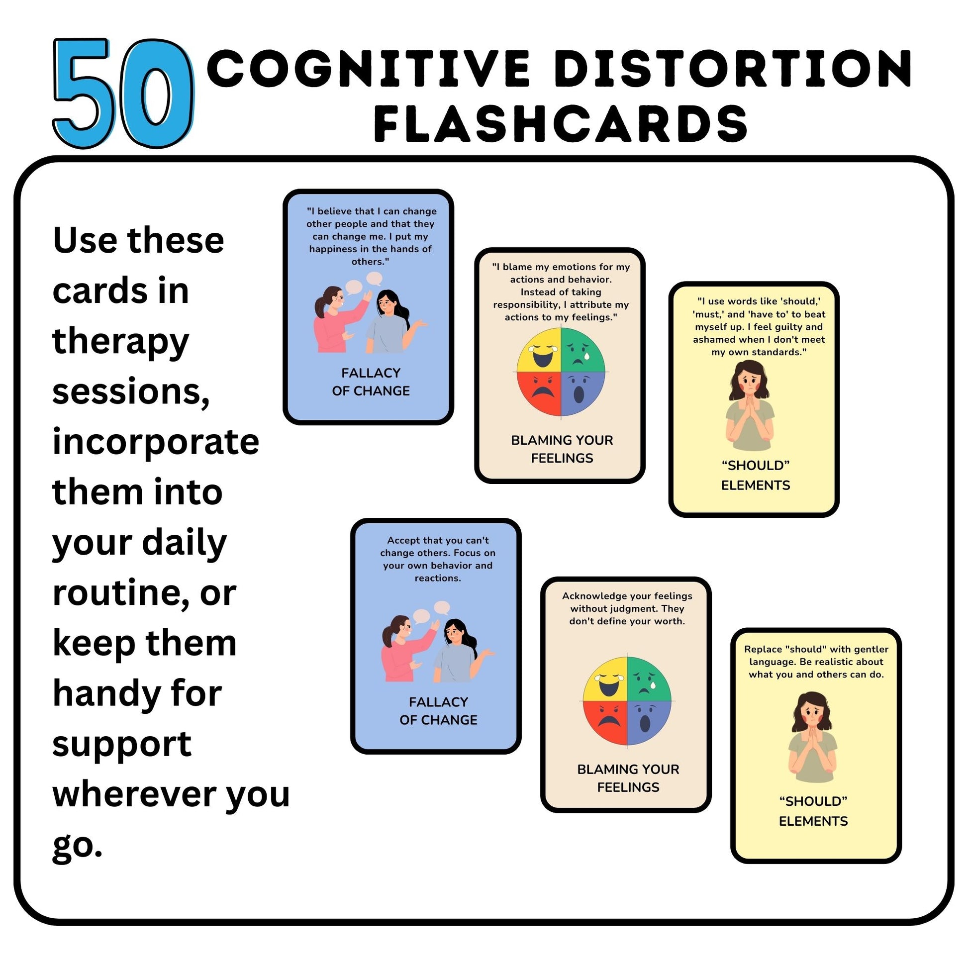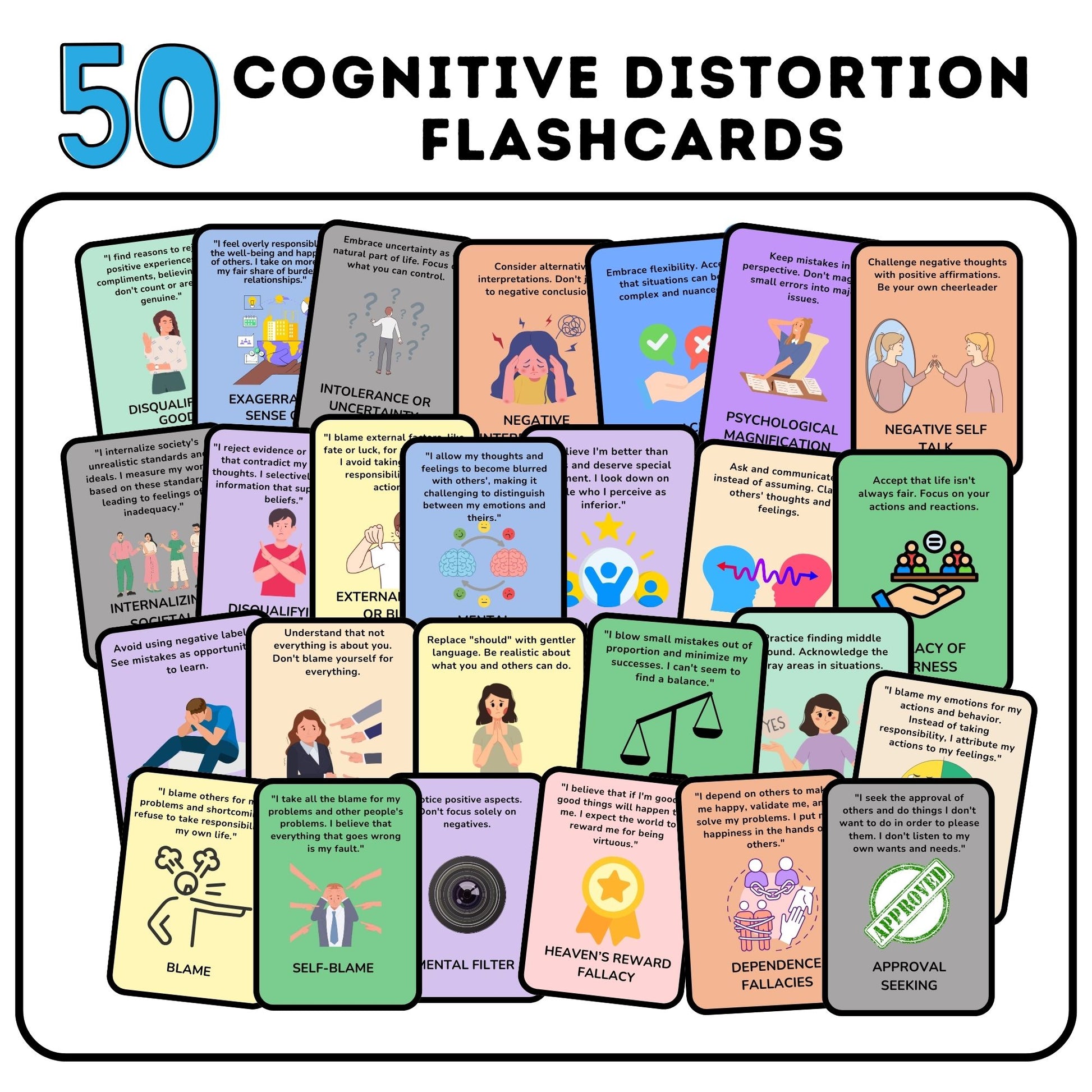 Cognitive Distortion Cards – CBT Therapy Cards for Cognitive Behavioral Therapy, Cognitive Biases, Mental Health Worksheets, Therapy Tools