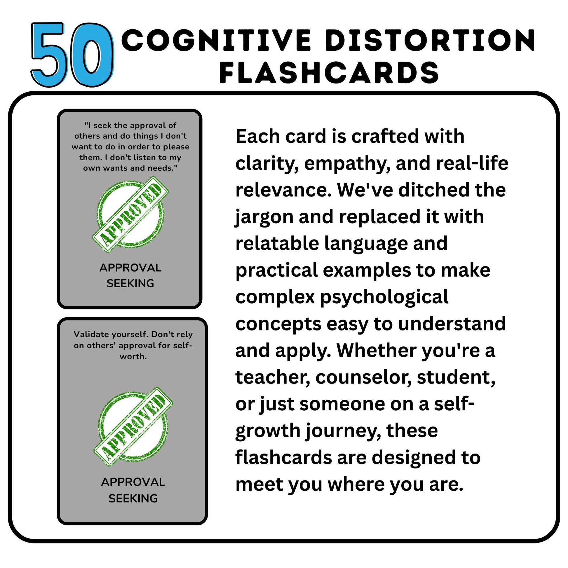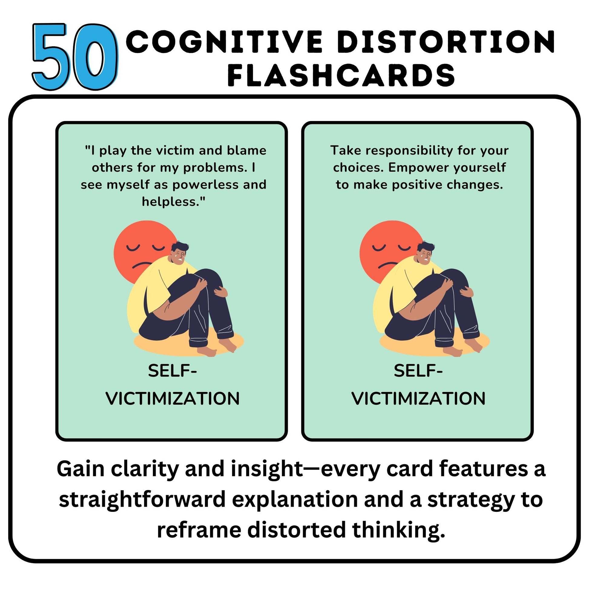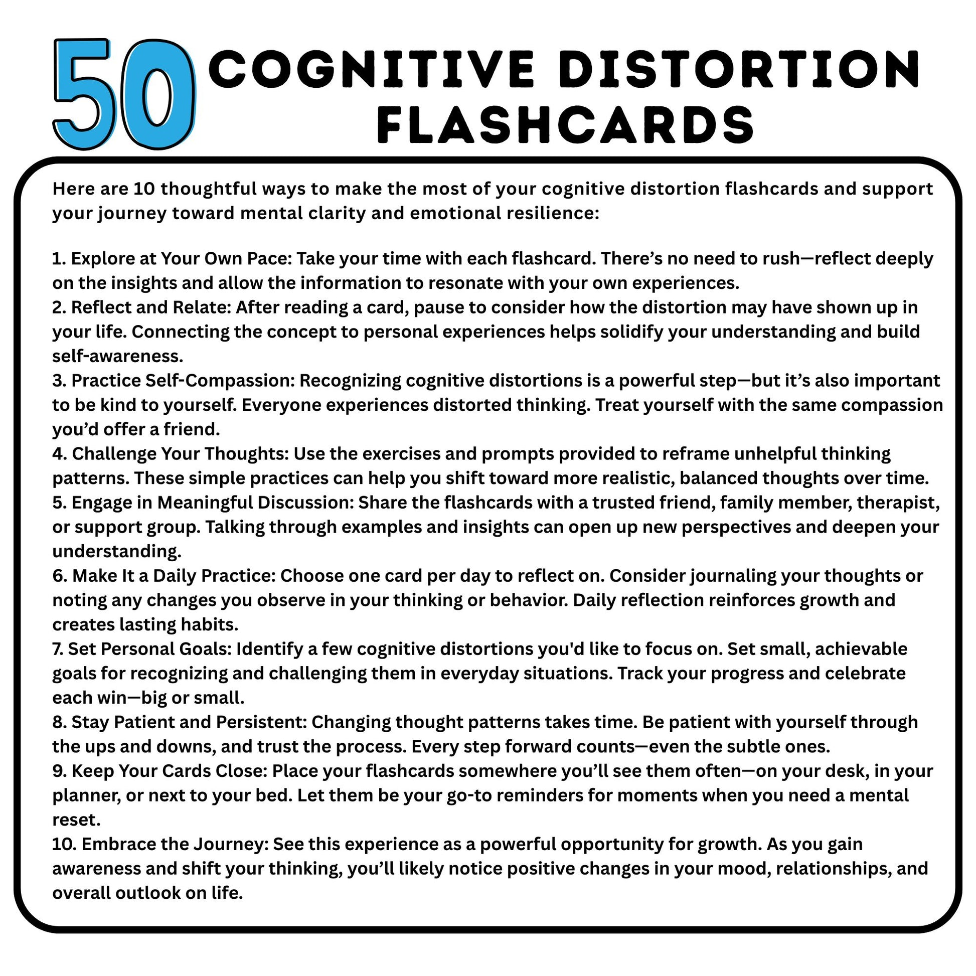 Whether you’re a mental health professional or simply someone working on personal growth, these Cognitive Distortion CBT Flashcards are powerful tools to help you reshape your mindset, reframe negative thoughts, and build lasting emotional strength—one thought at a time.