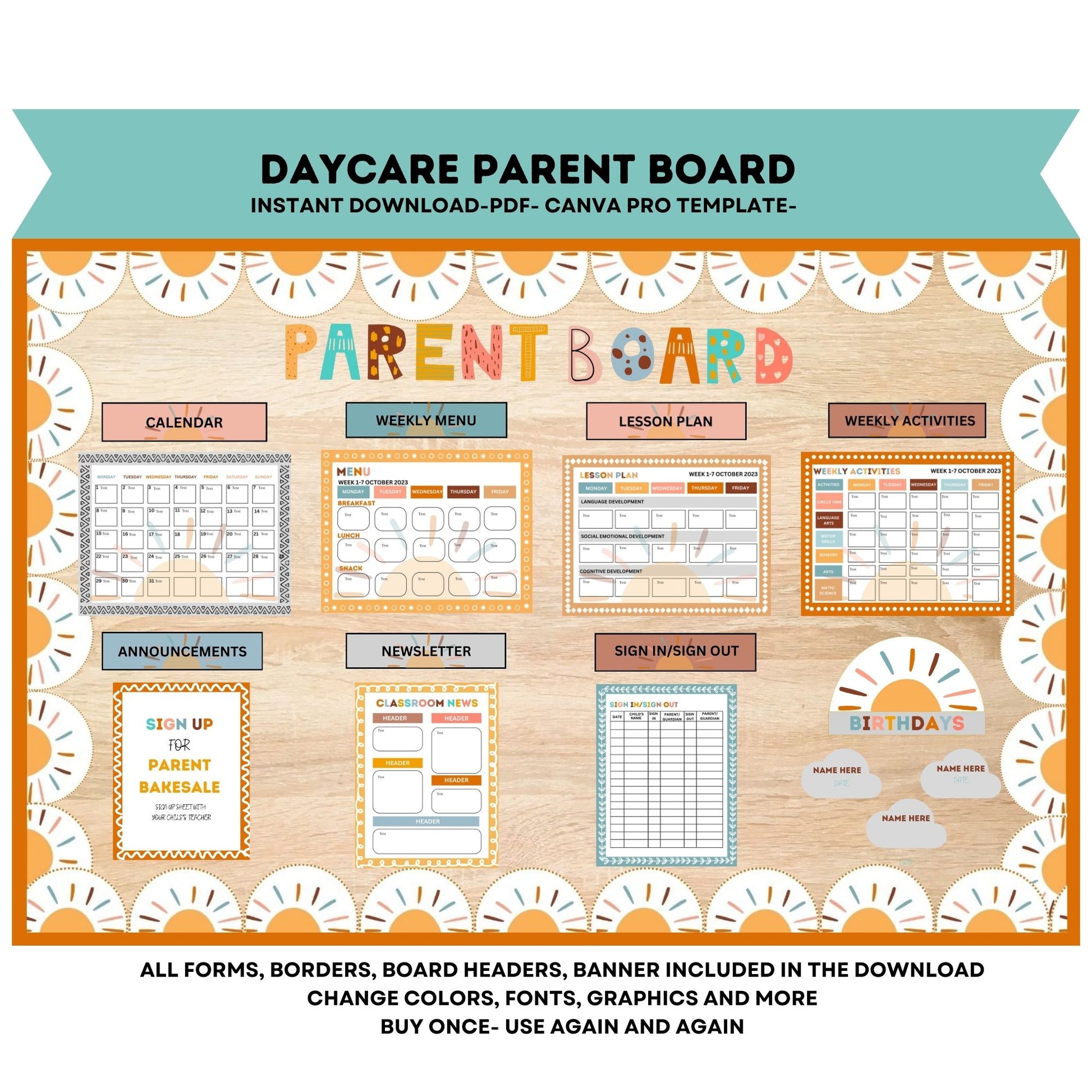 Daycare Parent Board Childcare Bulletin Board Canva Editable Template Parent Info Board Organization Daycare Management Editable Forms