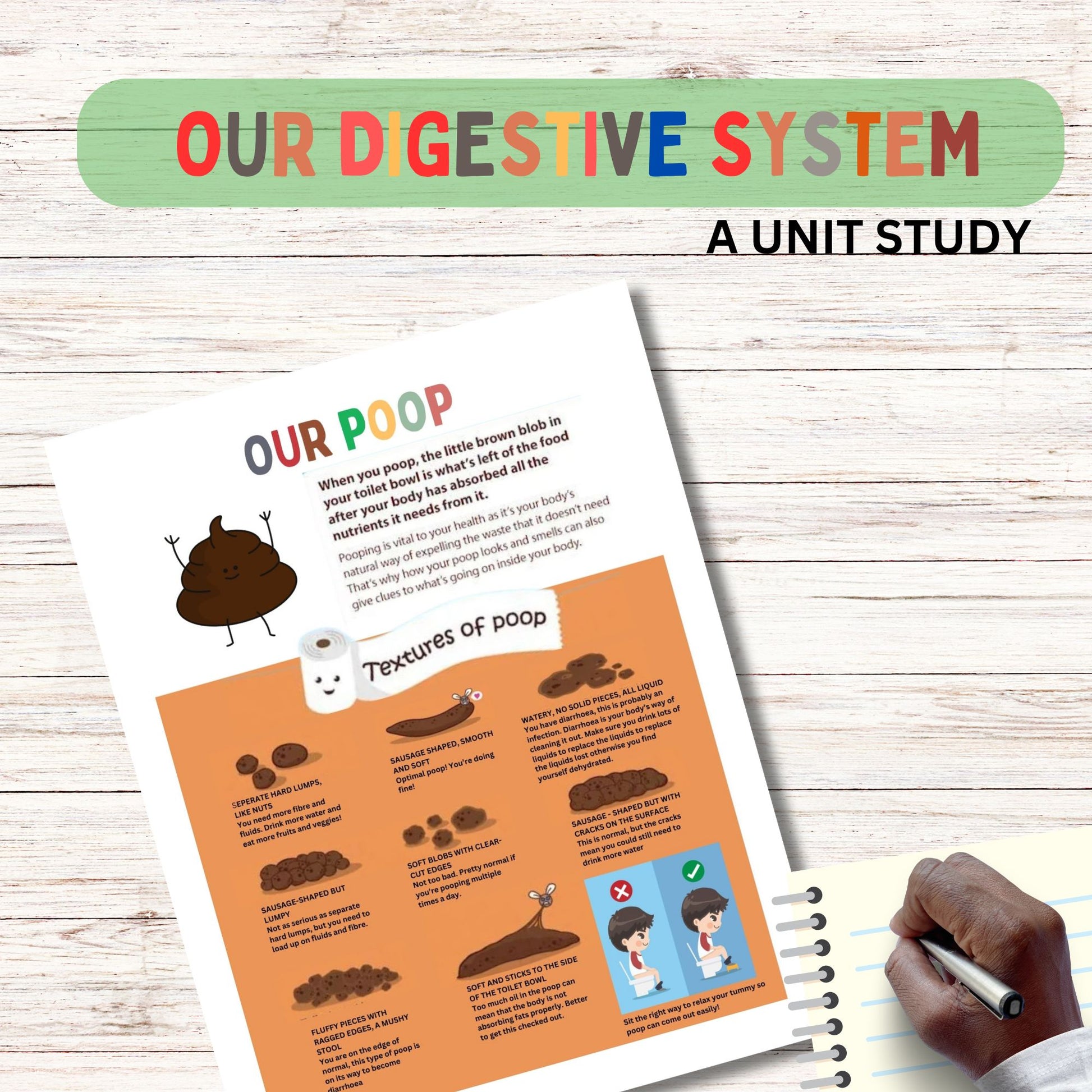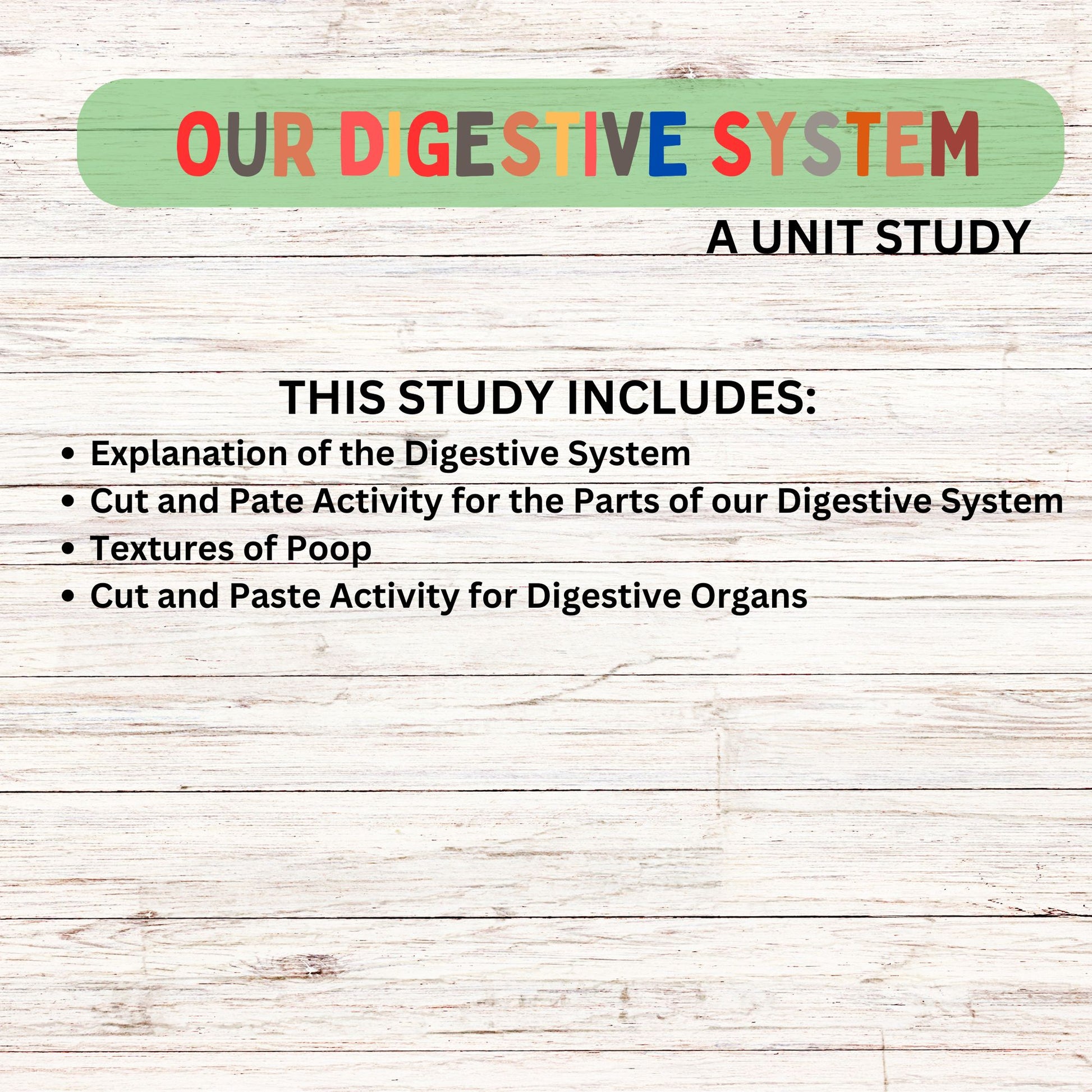Dive into the fascinating journey of digestion with this vibrant, kid-friendly unit study! Perfect for young learners, this resource explores the digestive system with colorful illustrations, fun facts, and engaging activities. Kids will learn how food travels through their body and transforms into energy, exploring each part of the digestive process along the way. Interactive cut-and-paste activities reinforce learning by allowing students to sequence the digestive organs and track how poop makes its way through the system. This unit is designed to make complex concepts simple, memorable, and fun, ideal for science lessons and health education.