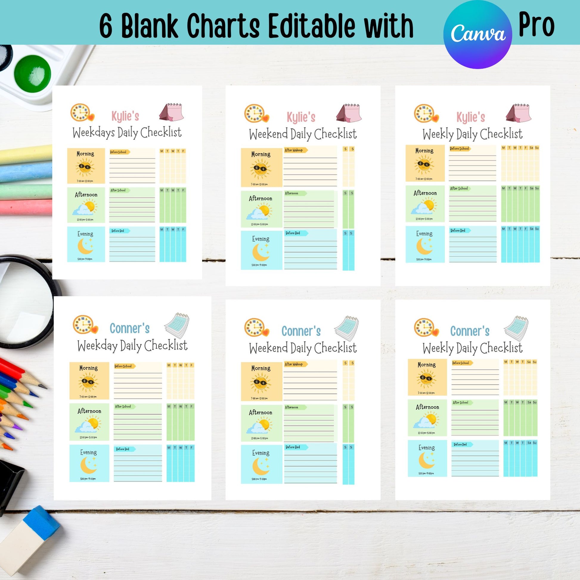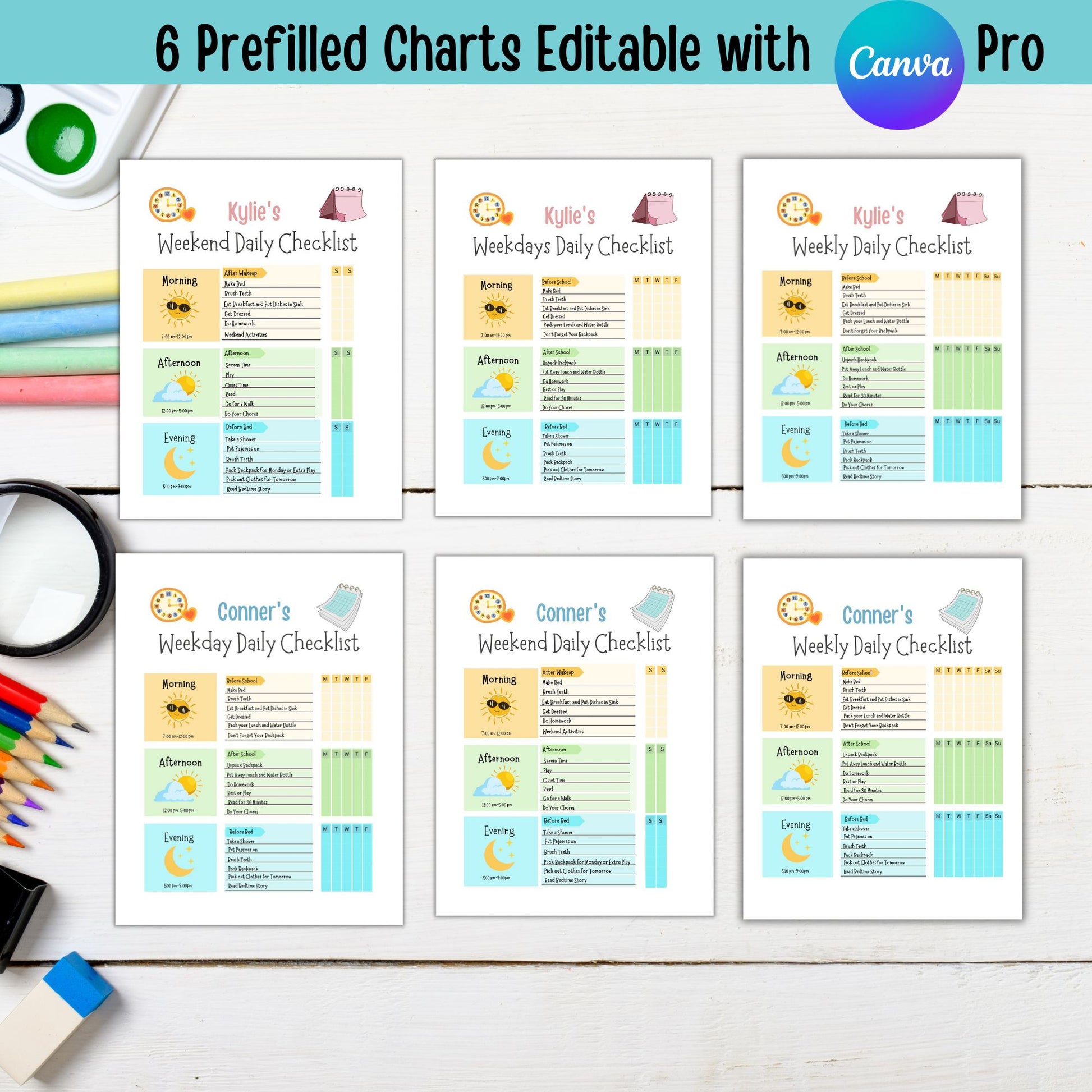 Editable Chore Chart for Multiple Kids Daily Checklist Template for Canva Responsibility and Daily Routine Kids Chore Checklist
