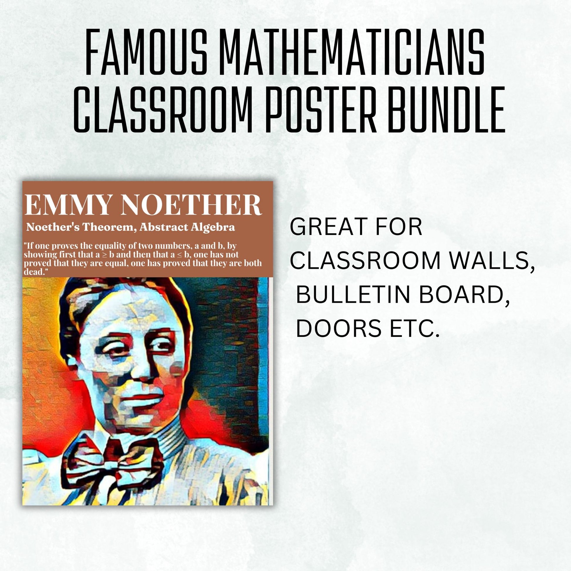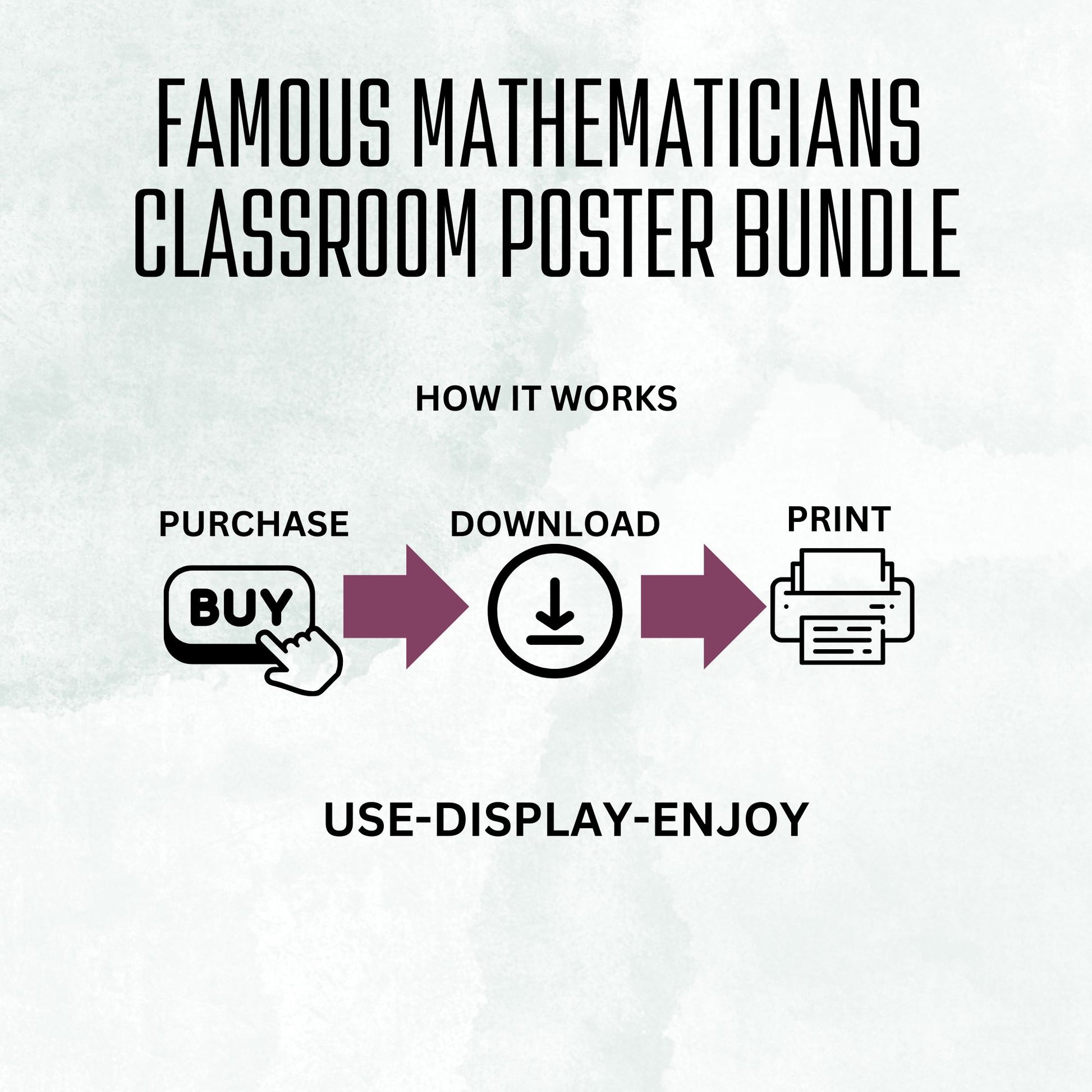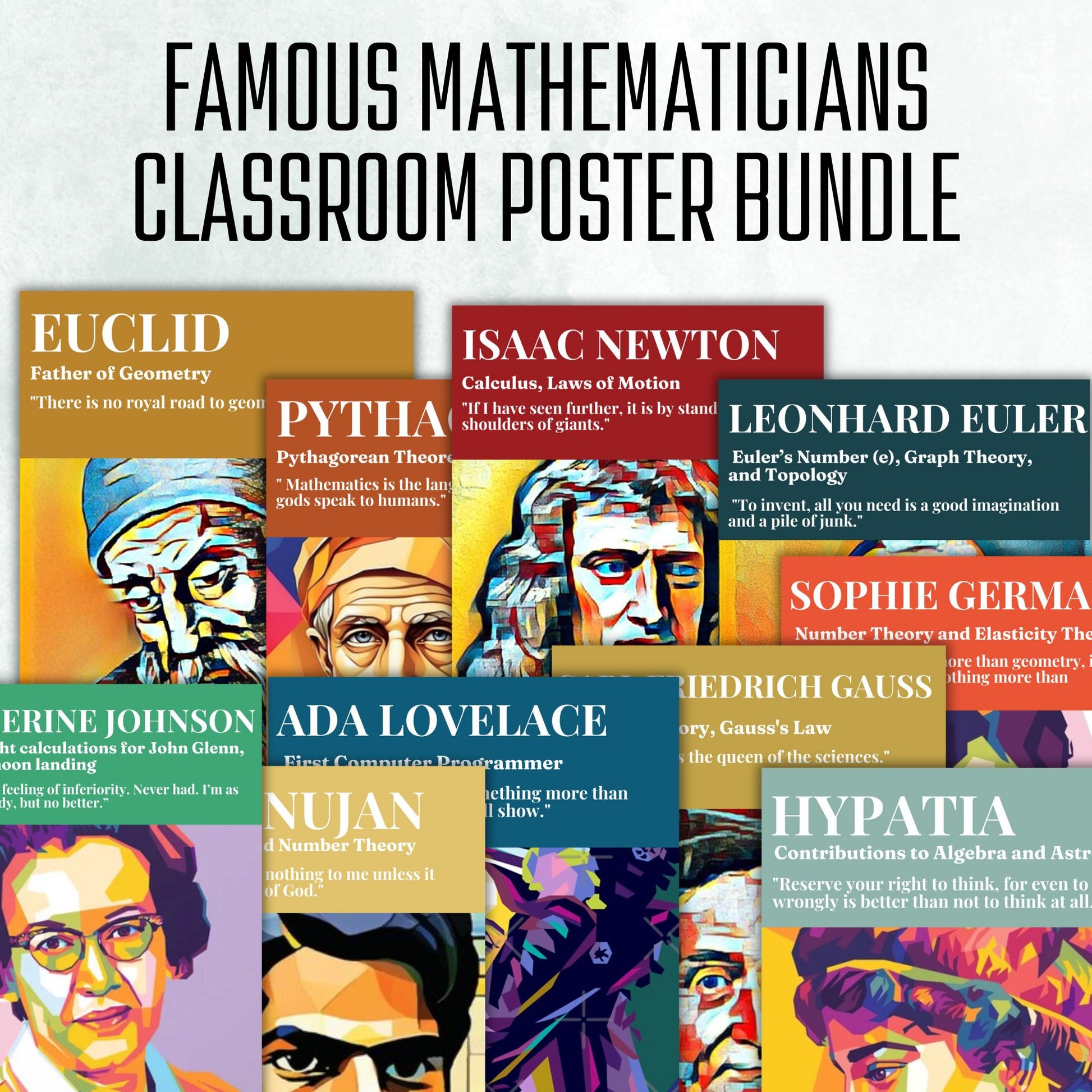 This digital download features 15 vibrant, illustrated posters of history’s greatest mathematicians, such as Isaac Newton, Katherine Johnson, Euclid, and Emmy Noether. Each poster includes a portrait, their key contributions—like orbital calculations, calculus, and geometry—and an inspiring quote. Perfect for classroom decor, these educational and visually engaging posters make learning about mathematics fun. Ideal for teachers looking to inspire their students with famous figures who shaped the world of math.