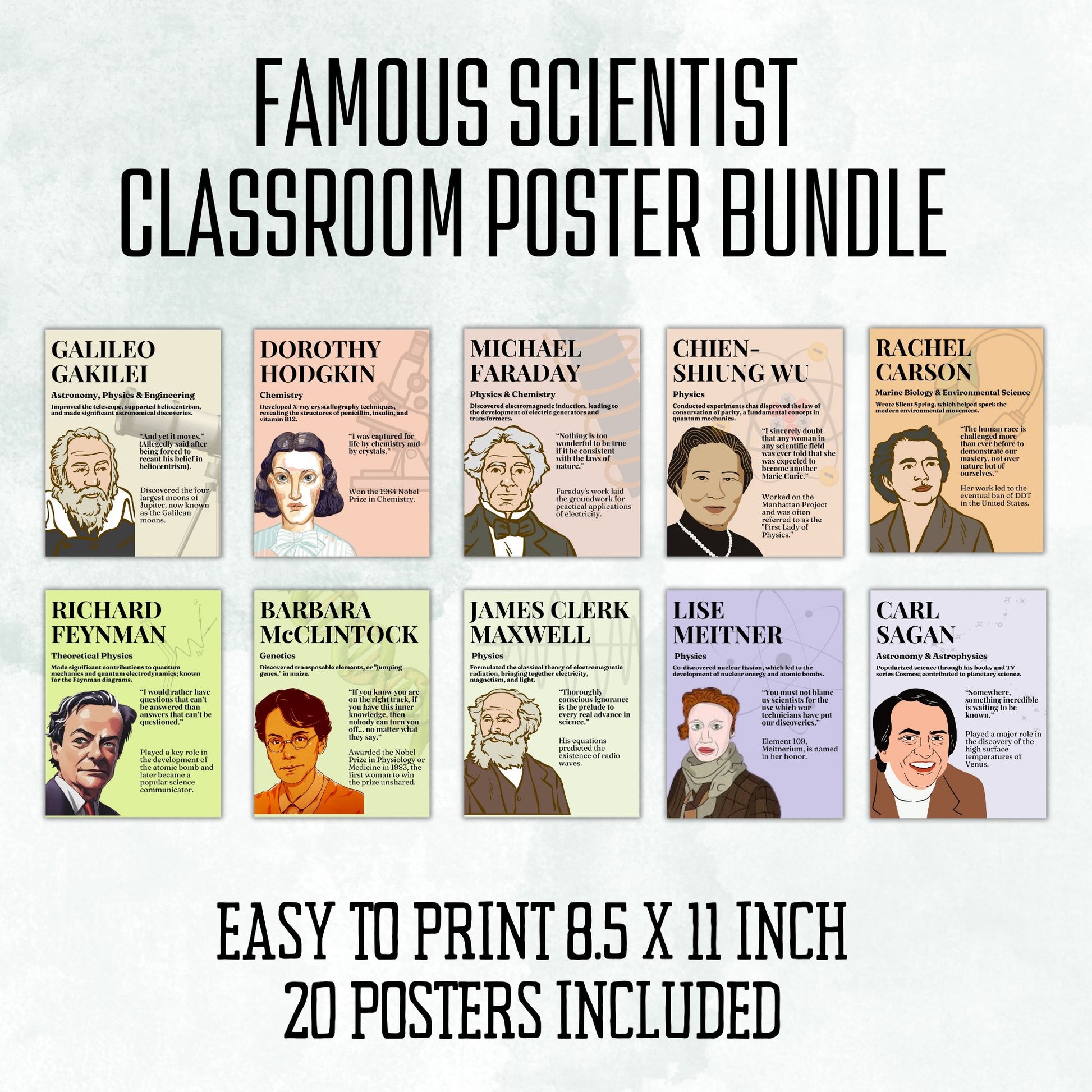 Perfect for sparking curiosity and inspiring future scientists, this poster bundle is a valuable addition to any classroom or educational space. Celebrate the legacy of these remarkable individuals and encourage a love for science in your students!