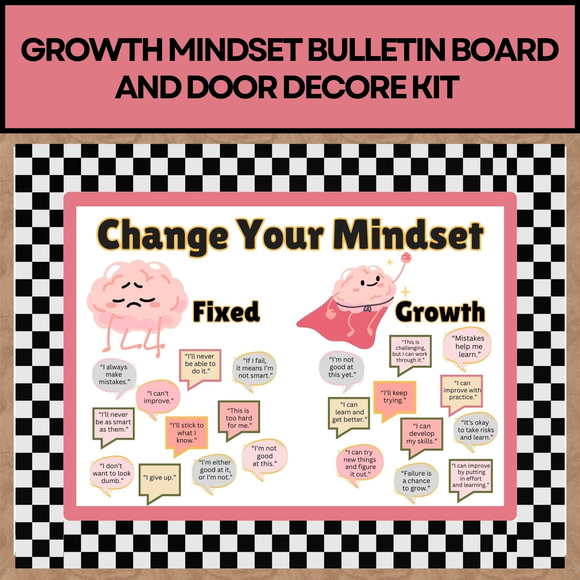 Transform your classroom into a hub of motivation with this Growth Mindset Bulletin Board Kit! Featuring a trendy, modern design, this digital download includes two stylish layouts and 12 inspiring mindset statements to help students shift from fixed to growth-oriented thinking. Perfect for teachers aiming to foster a positive, growth-focused environment, this printable resource empowers students to embrace challenges, learn from mistakes, and believe in their potential. Download, print, and inspire your classroom today with this must-have growth mindset decor!