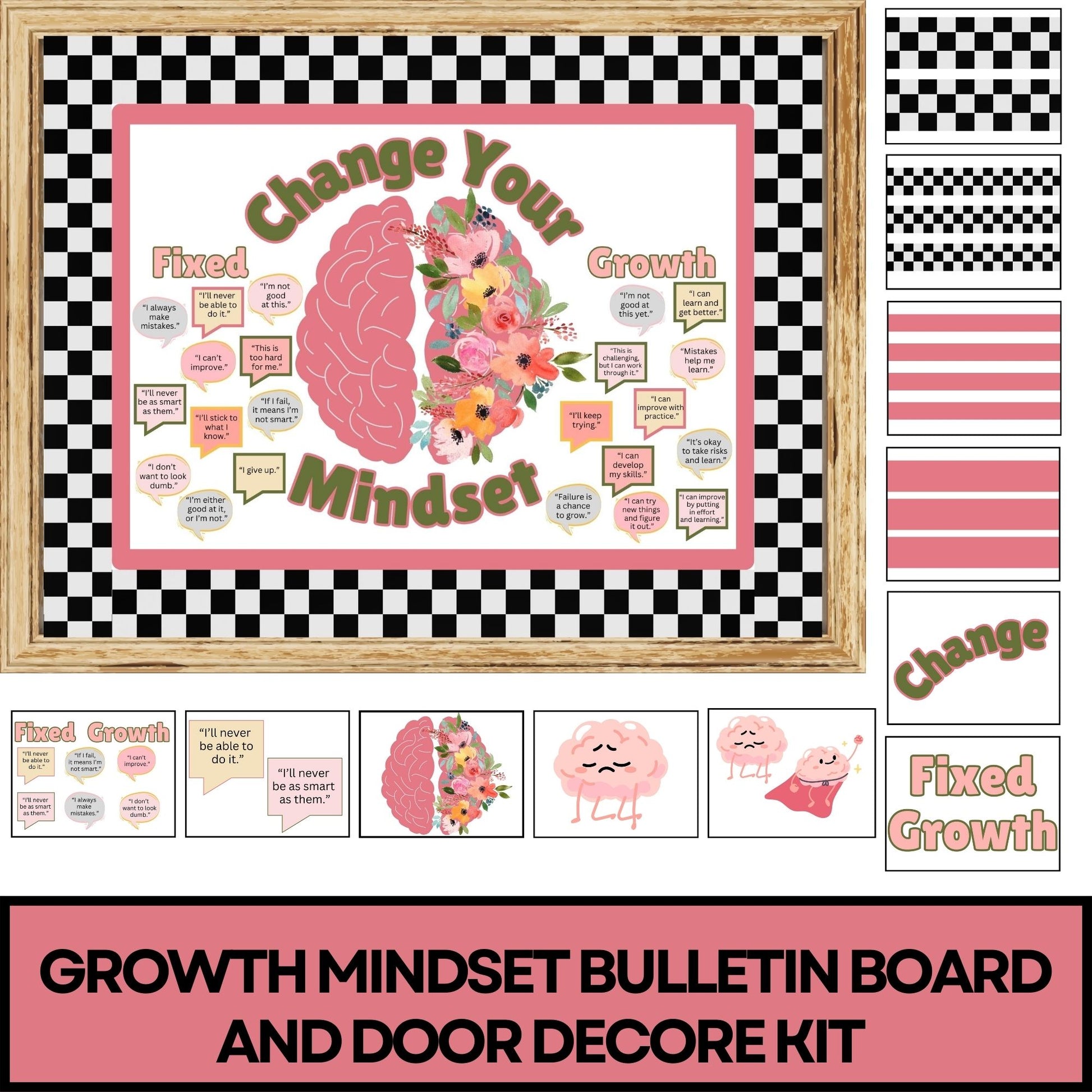 Growth Mindset Bulletin Board Kit – Modern Classroom Decor for Positive Thinking Change your Mindset Bulletin Board Growth Mindset Pastel Classroom Social Emotional Decor Back to School Decor School Counselor Template