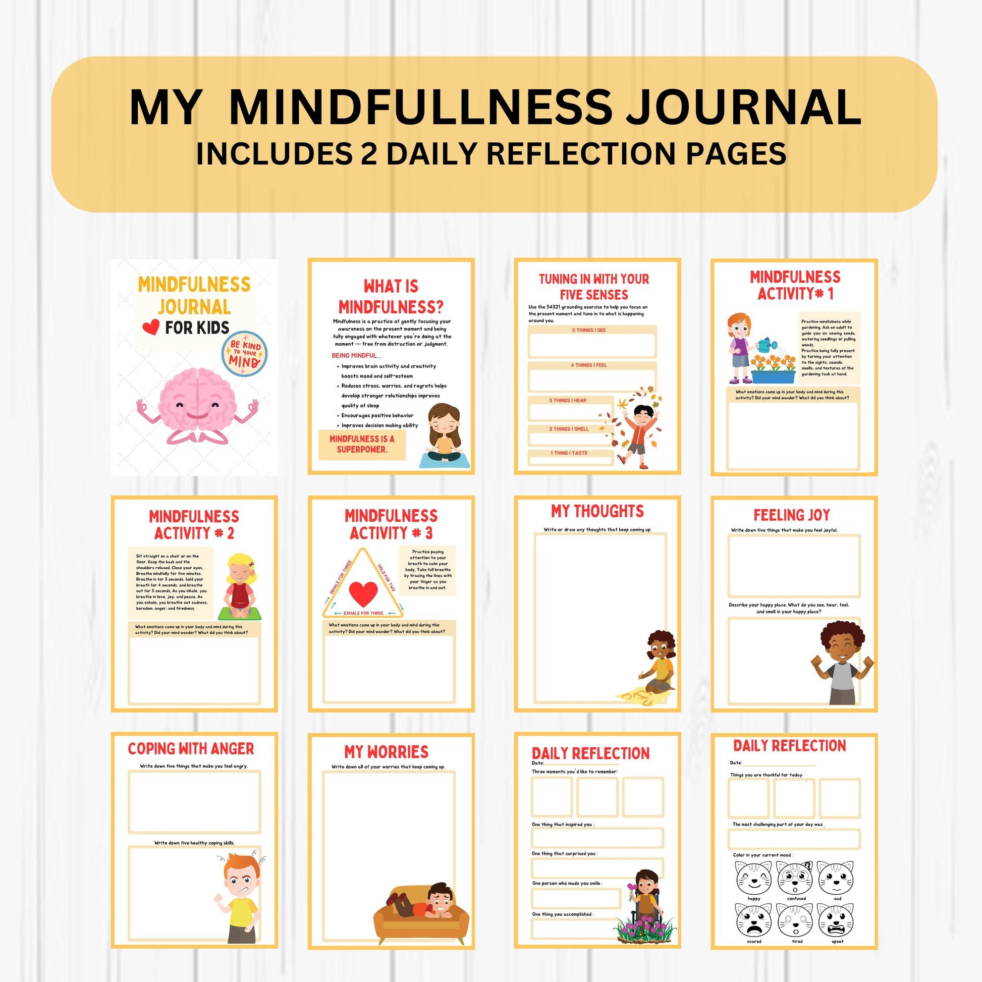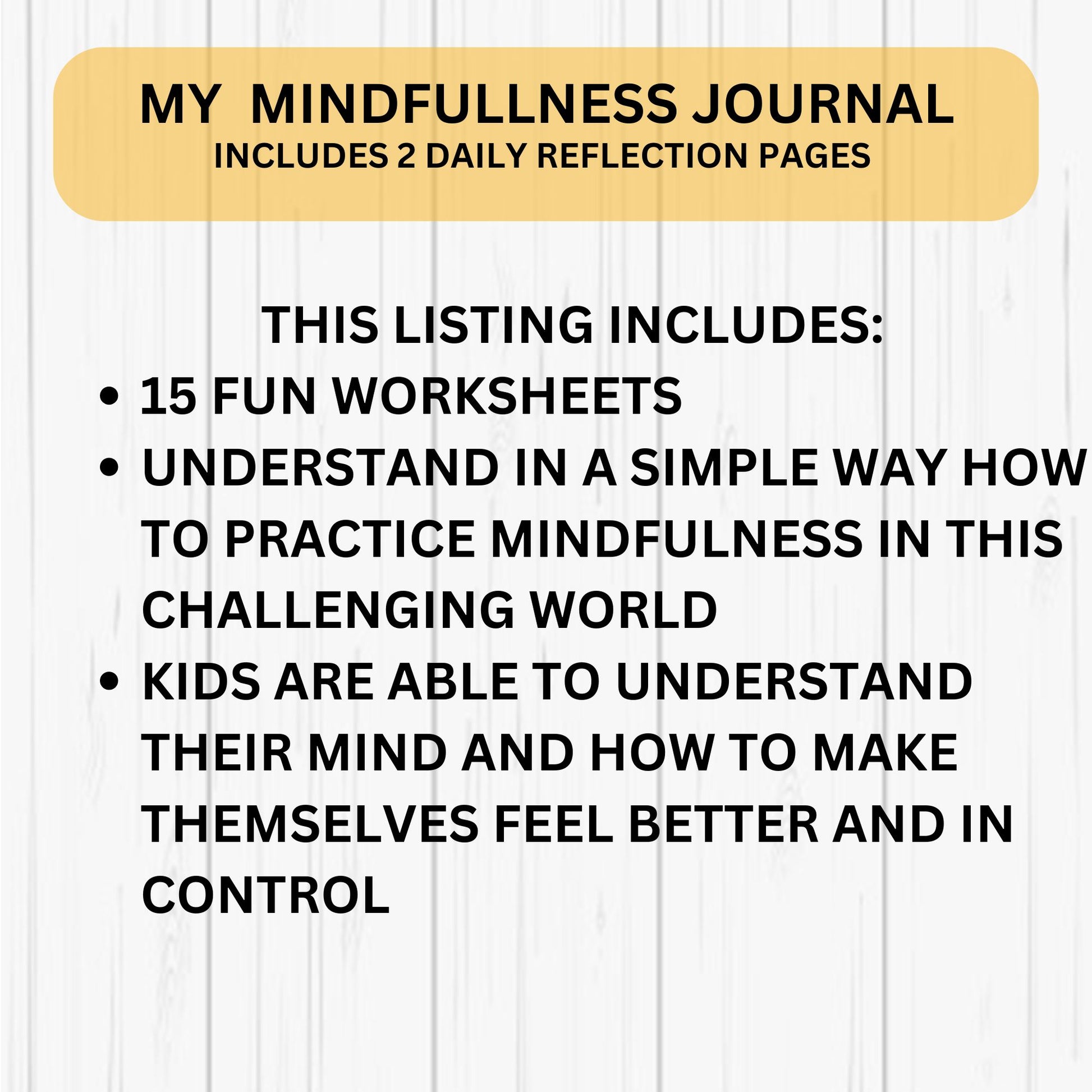 Kids Mindfulness Journal Pages Mental Health Mindfulness Workbook Self Esteem and Gratitude Positive Thinking Printable