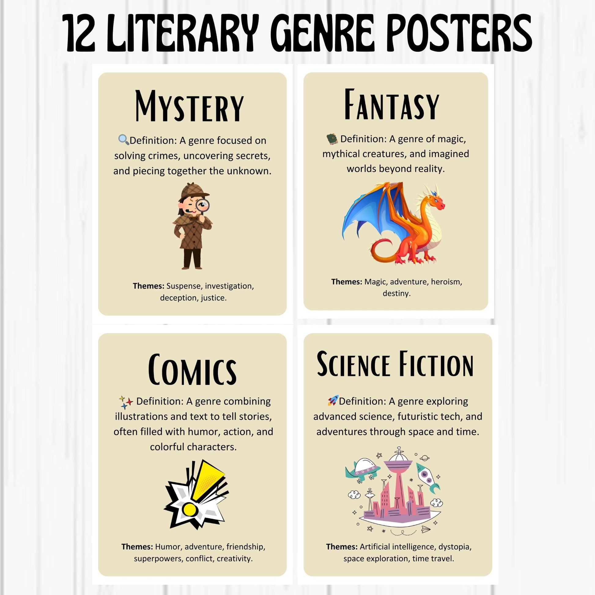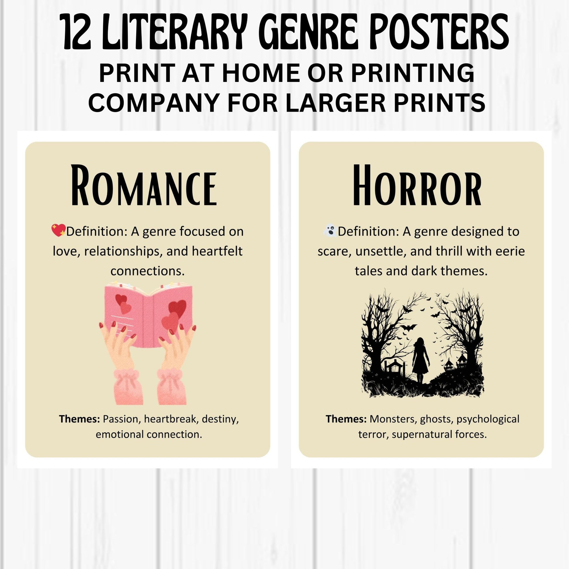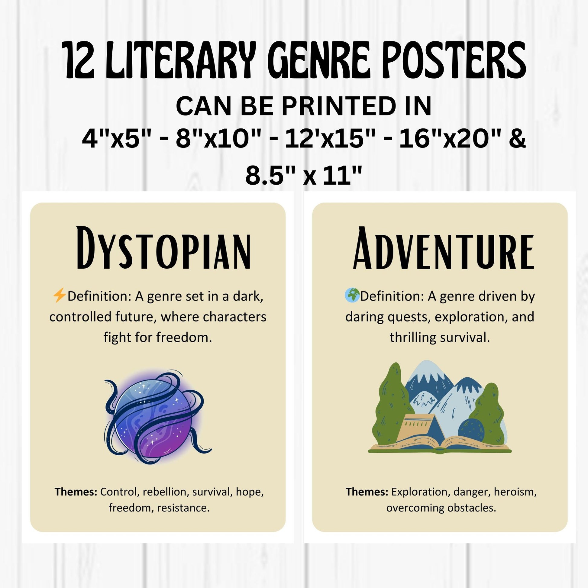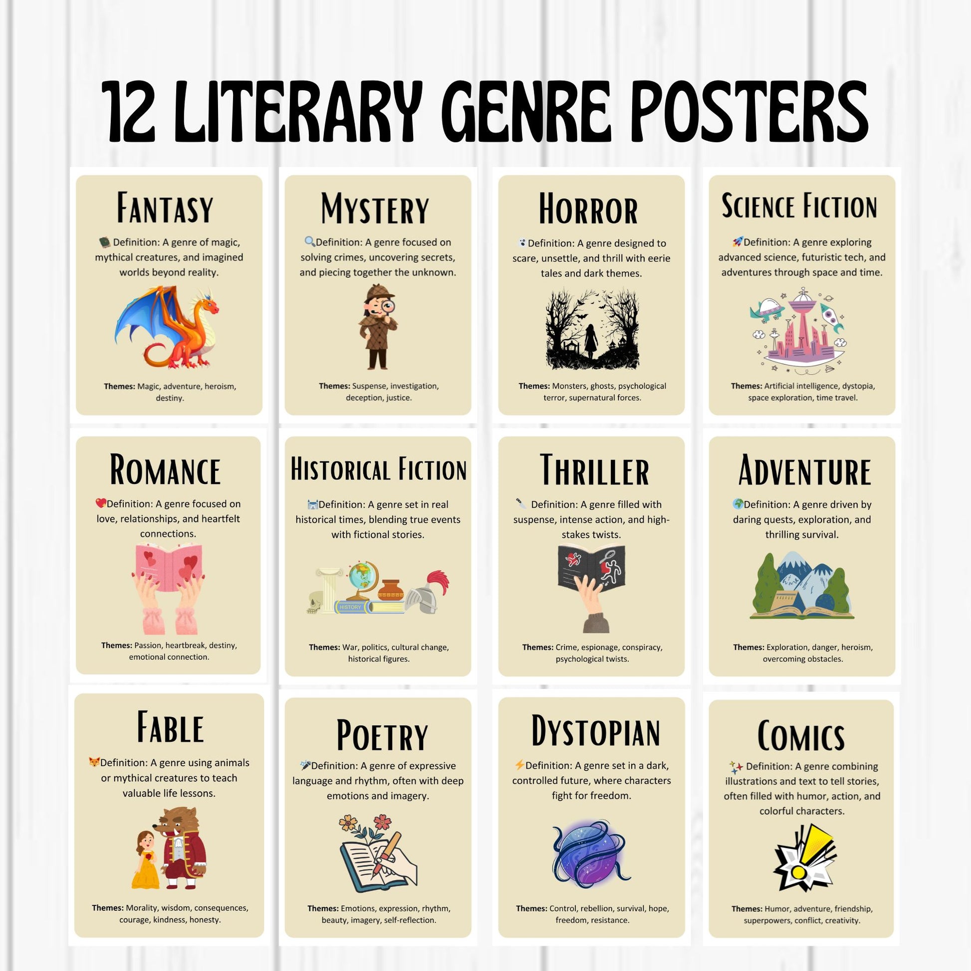 Perfect for use in genre studies, bulletin boards, genre walls, or as visual aids during literature lessons. Download, print, and instantly enhance your learning space with this educational and aesthetic resource.