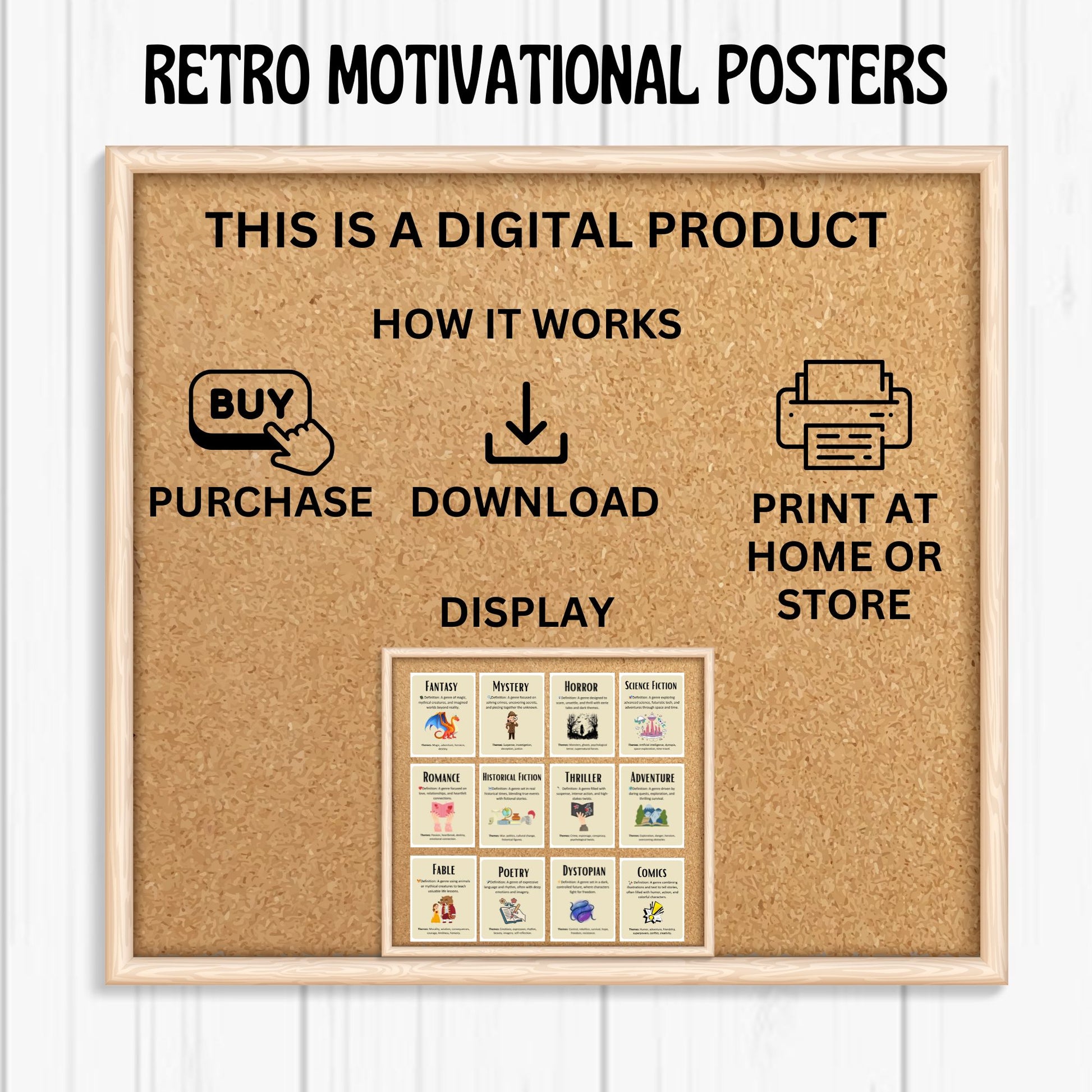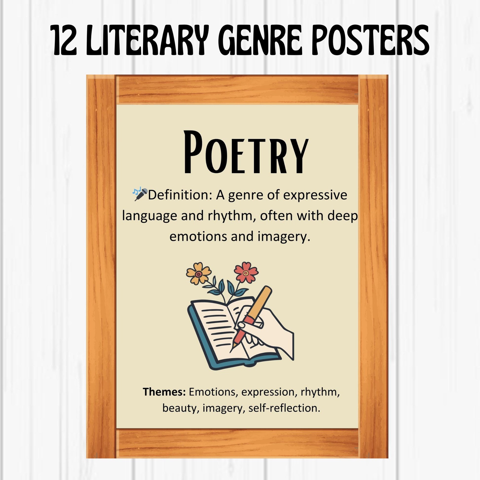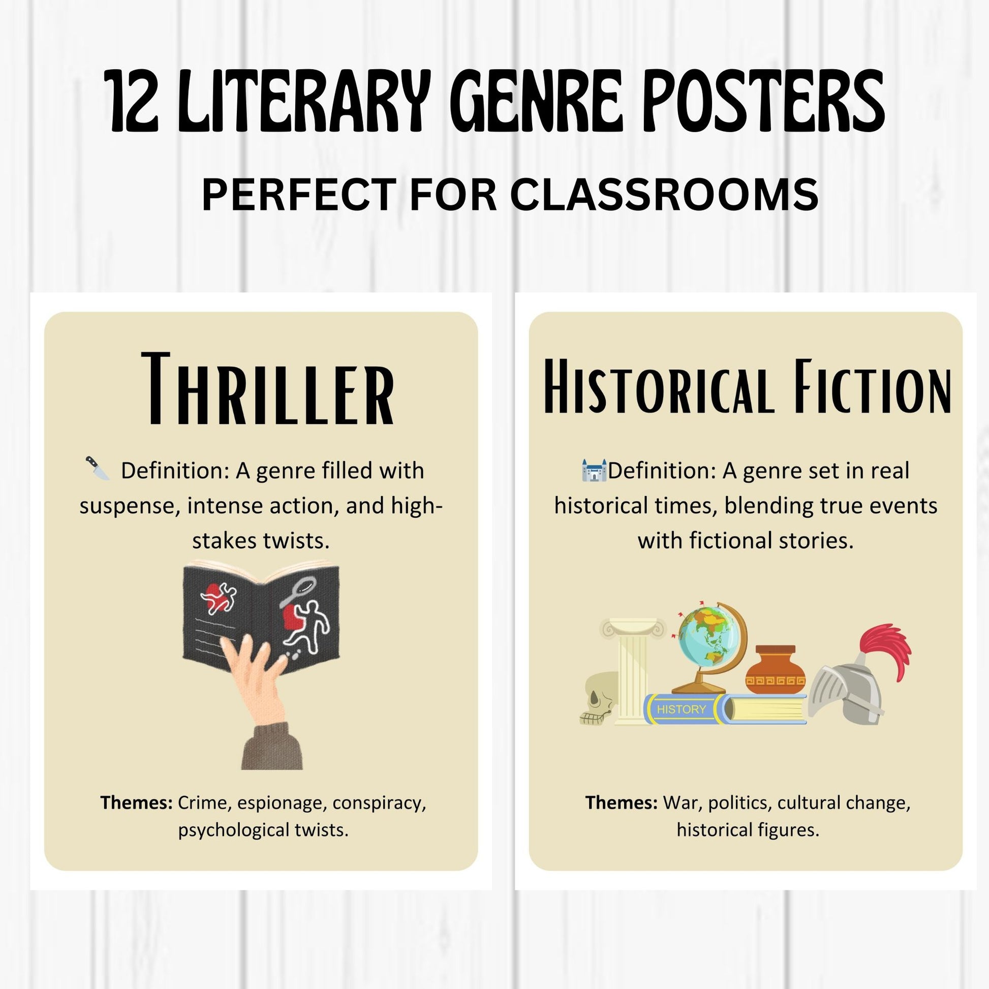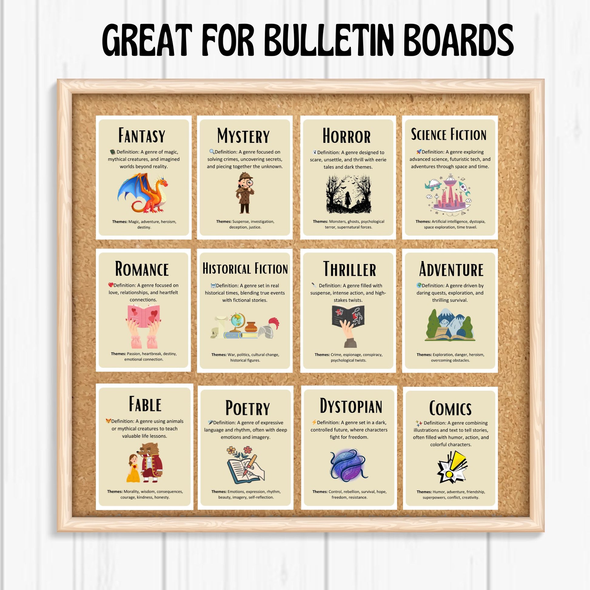 Perfect for use in genre studies, bulletin boards, genre walls, or as visual aids during literature lessons. Download, print, and instantly enhance your learning space with this educational and aesthetic resource.