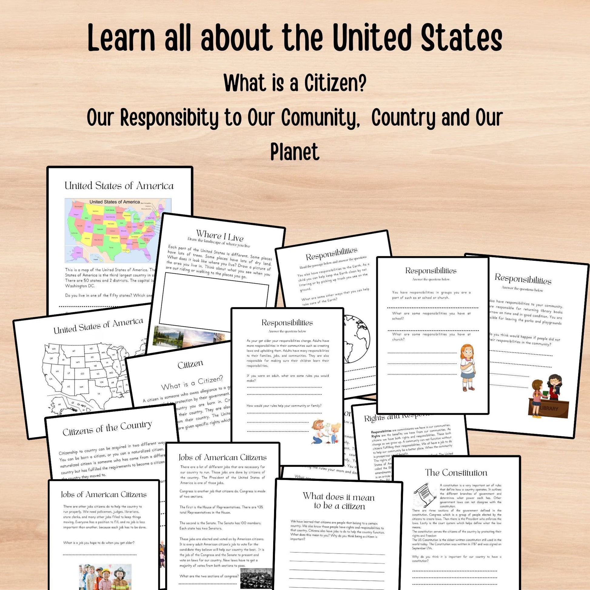 American Government – U.S. map and states, citizens’ rights and responsibilities, Constitution, Bill of Rights, and the role of the President.