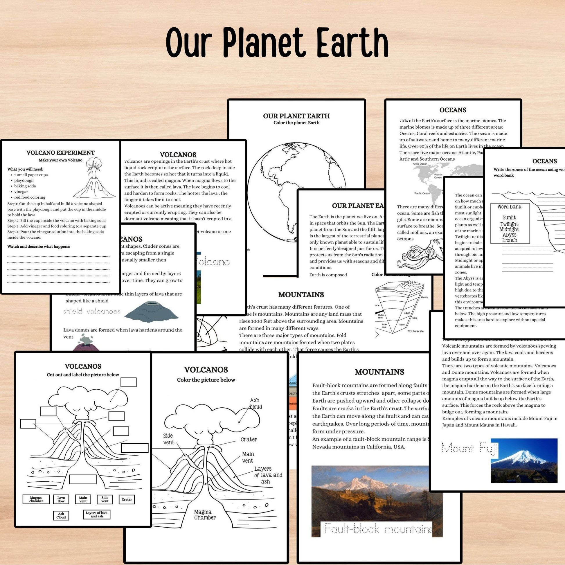 Earth & Space Science – Planet Earth, mountains, volcanoes, oceans, recycling, seasons, weather, and meteorology.