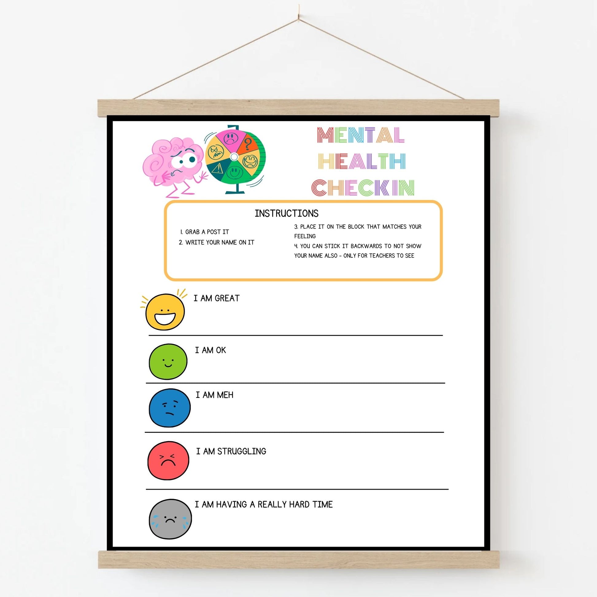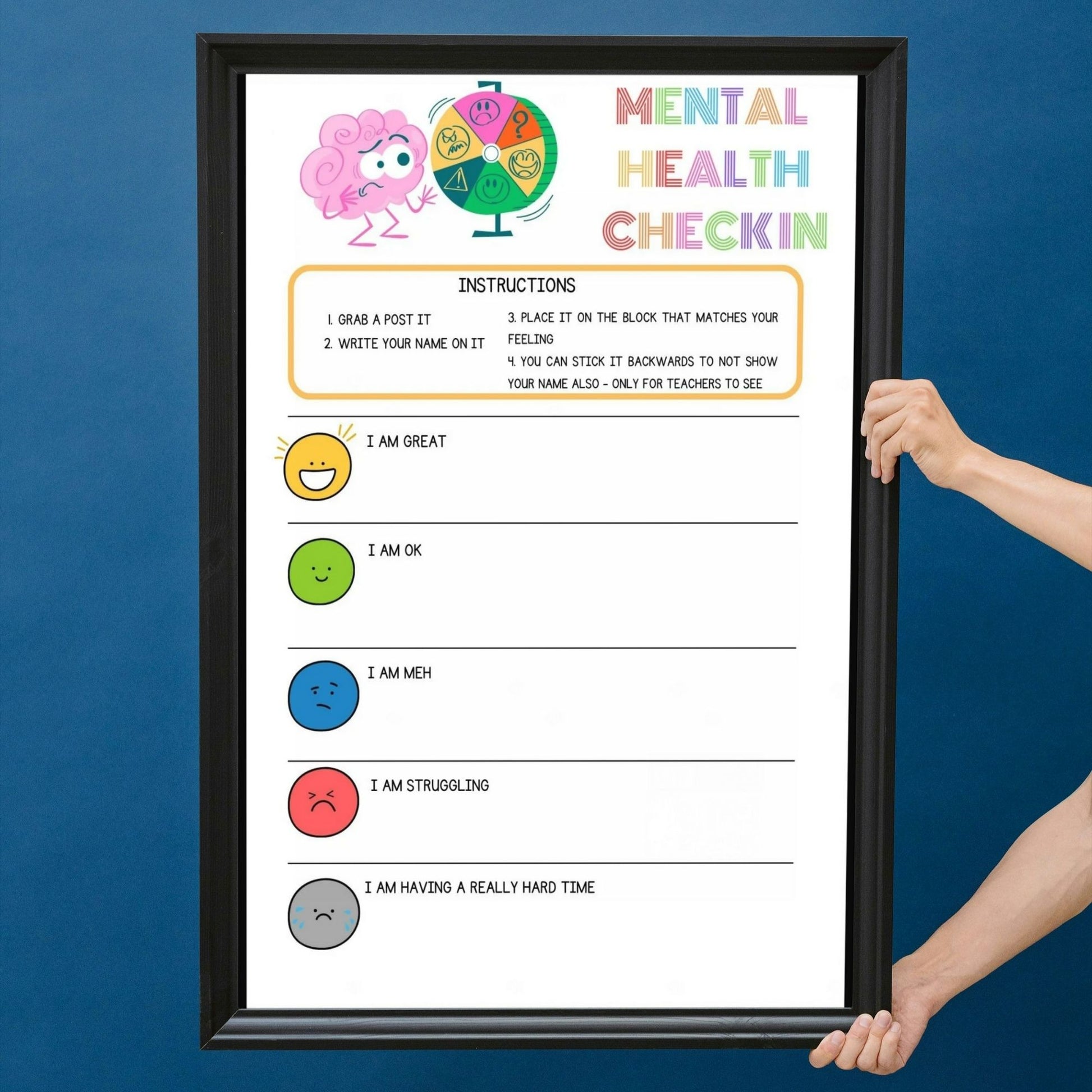 Welcome to our Emotional Check-In poster, designed to help children express and understand their emotions in a safe and supportive environment. Whether you're a teacher, therapist, or school psychologist, this poster is a valuable tool for promoting mental health and well-being in children.