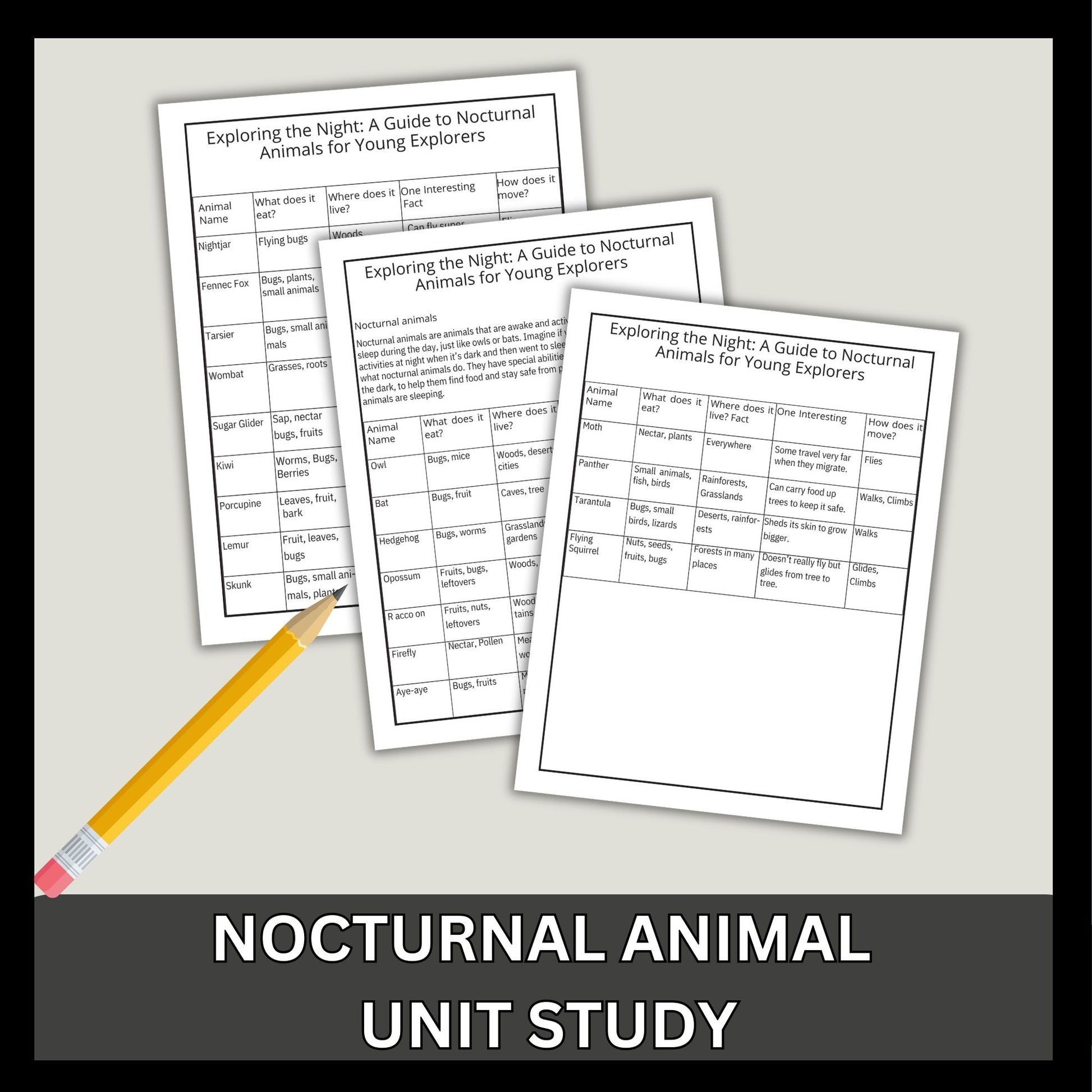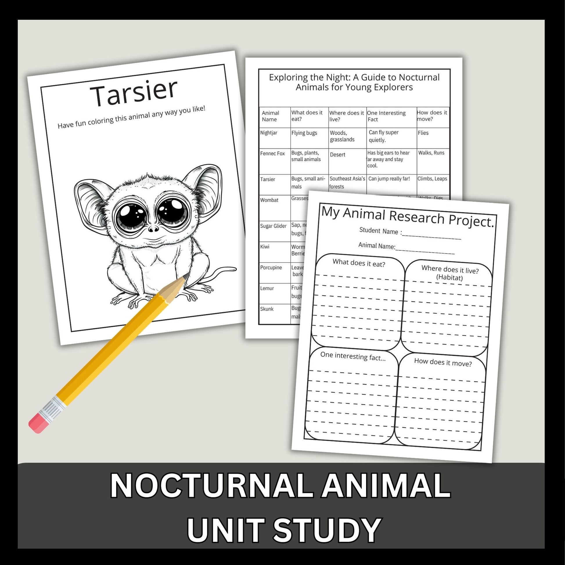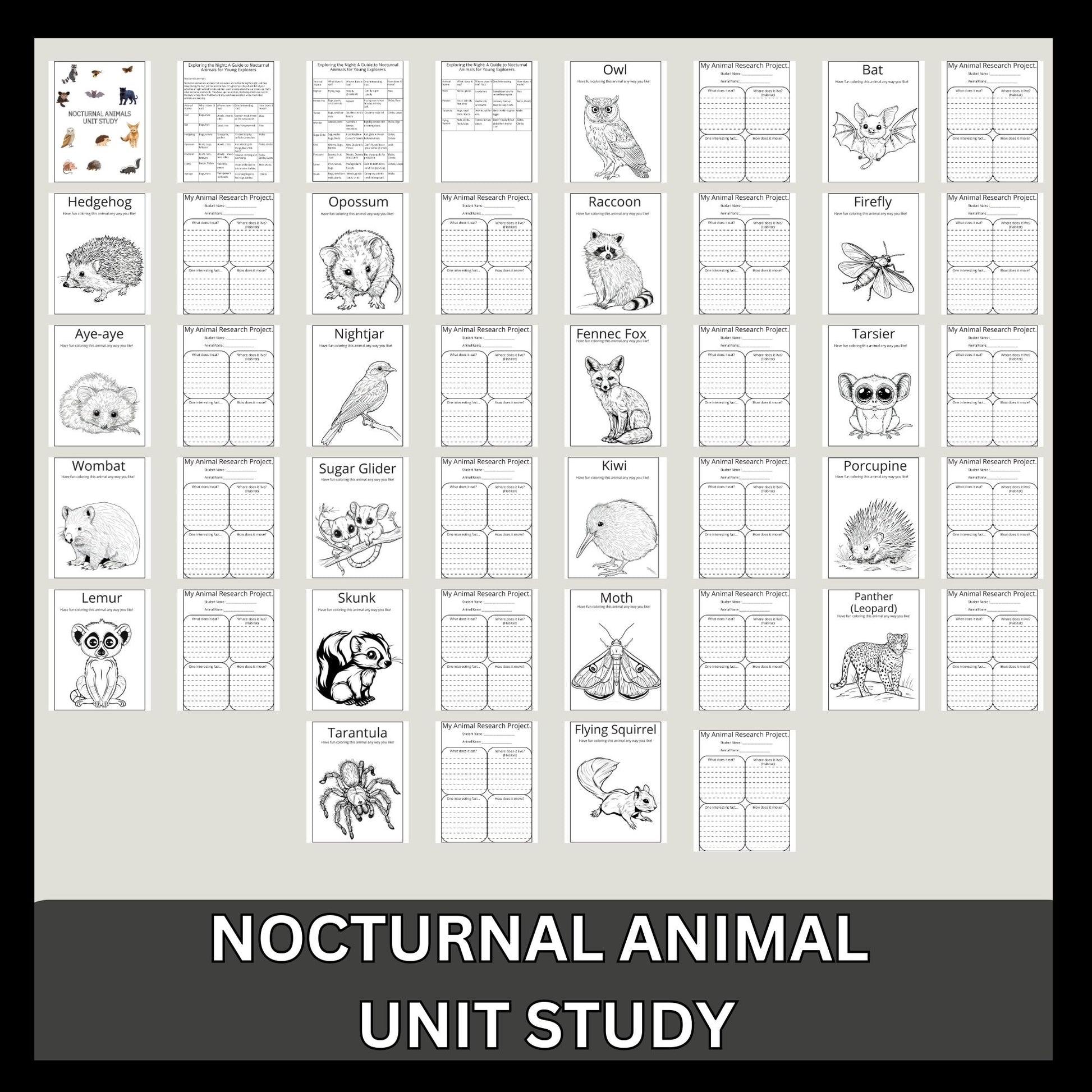 Discover the fascinating world of nocturnal animals with our immersive Unit Study! This comprehensive digital download includes research, coloring activities, and captivating facts for young explorers and naturalists. Perfect for 1st and 2nd graders, this bundle brings the animal kingdom to life under the cover of darkness.
