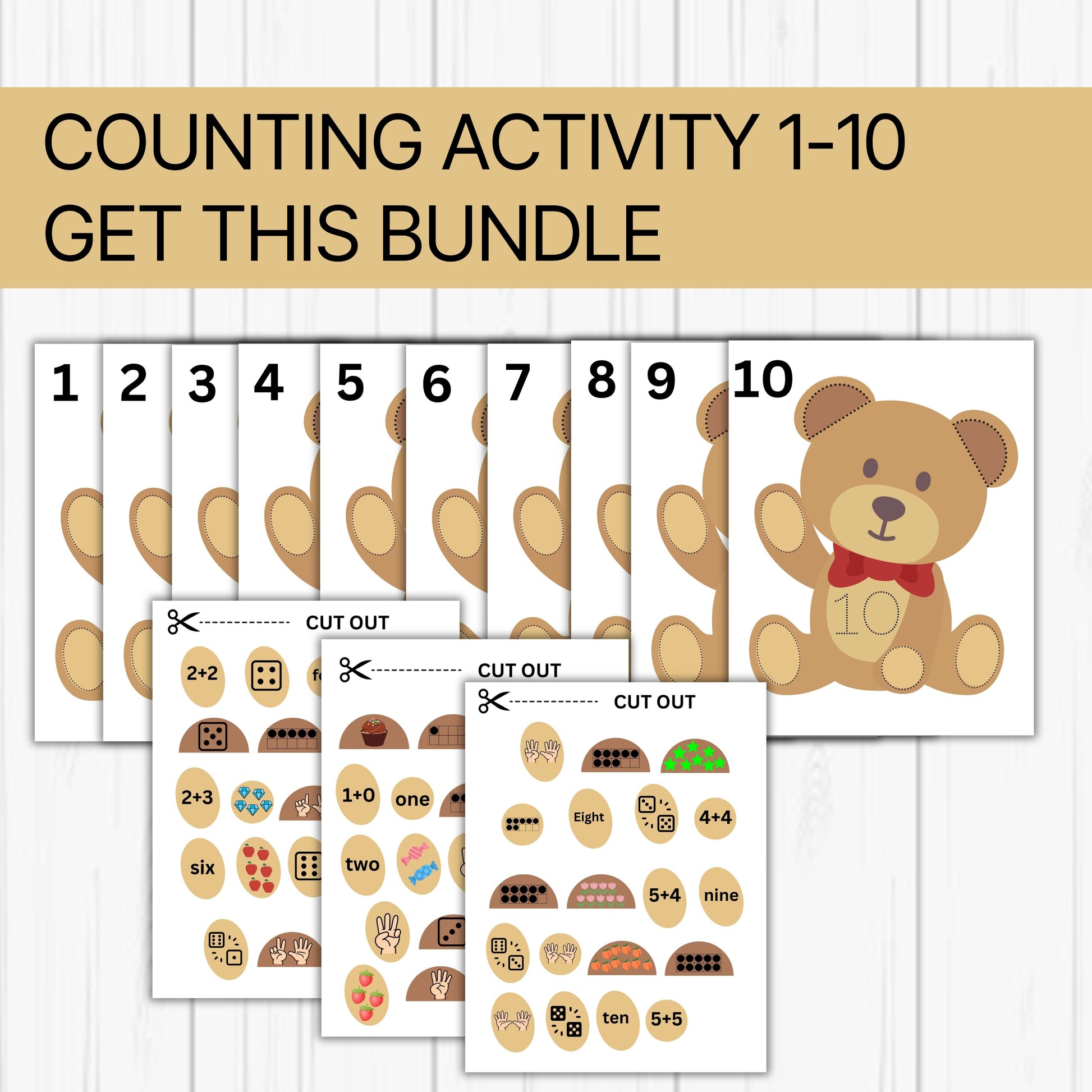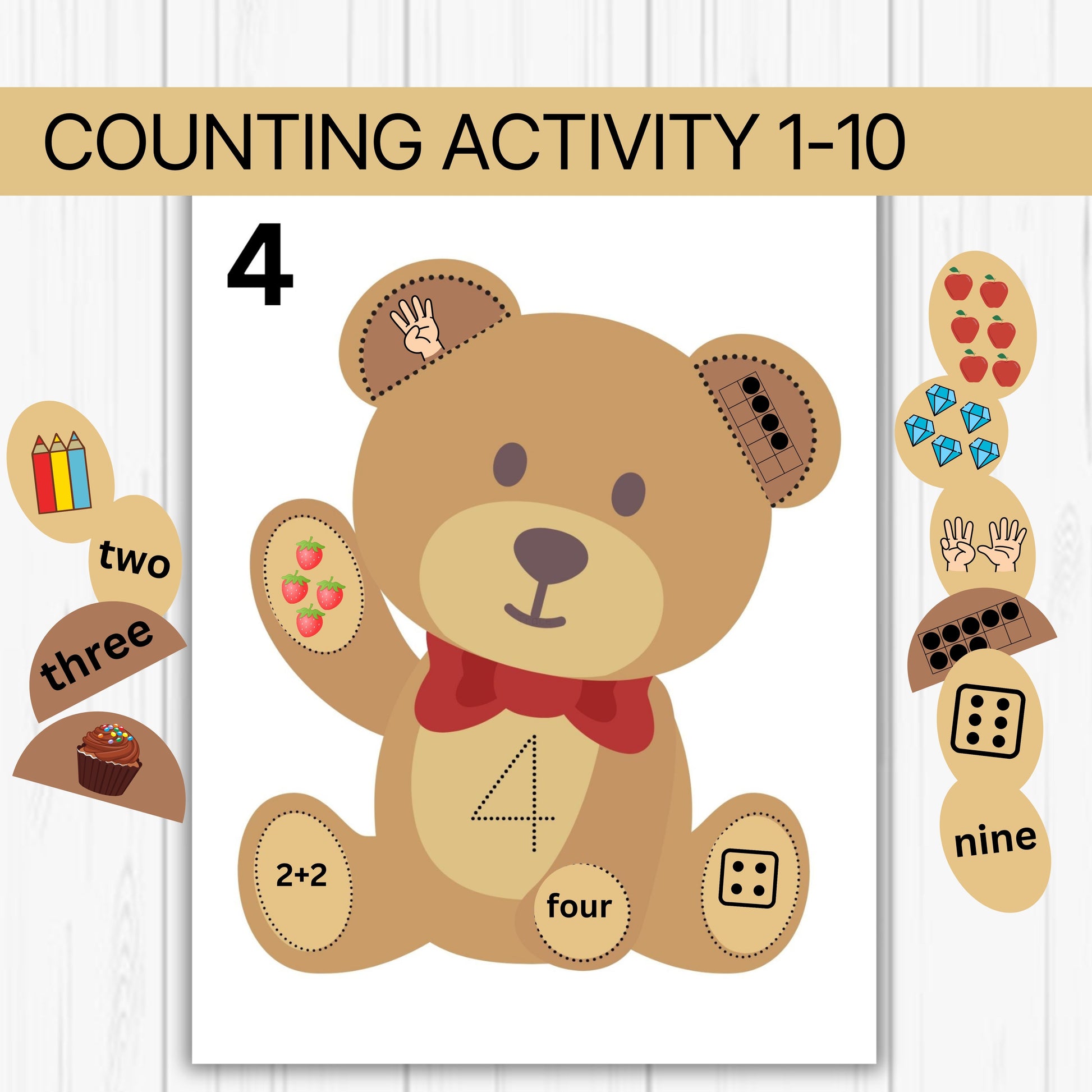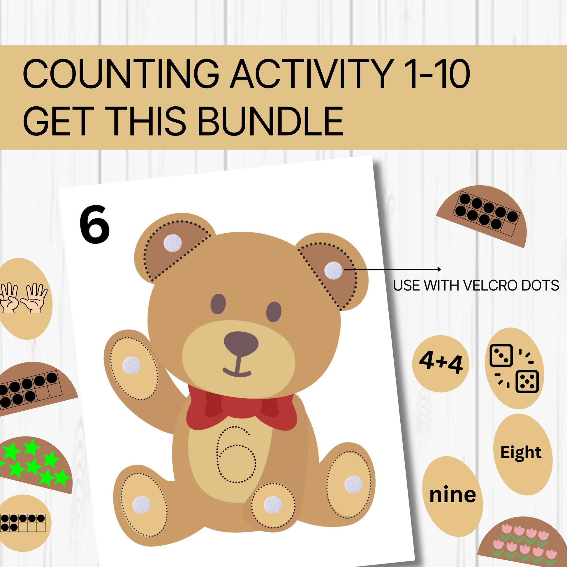 Help young learners develop essential math skills with this hands-on Making 1-10 Bear Game. This interactive activity allows preschoolers to practice counting and number recognition by creating different combinations for each number from 1 to 10 on a bear using velcro dots. Perfect for building early math skills, the game helps children visualize numbers and understand number combinations in a fun, engaging way.