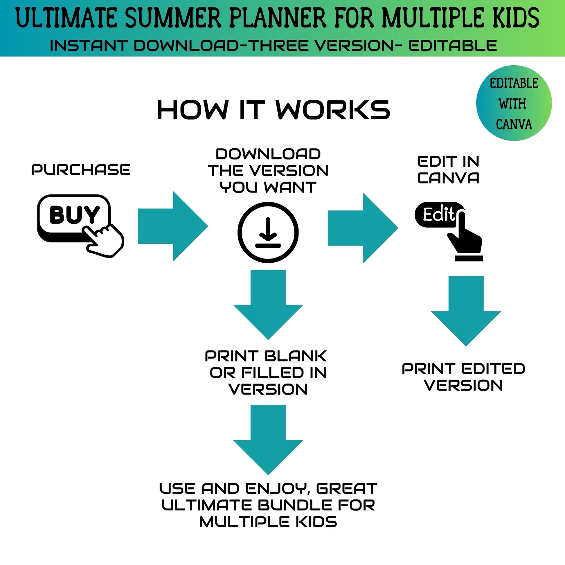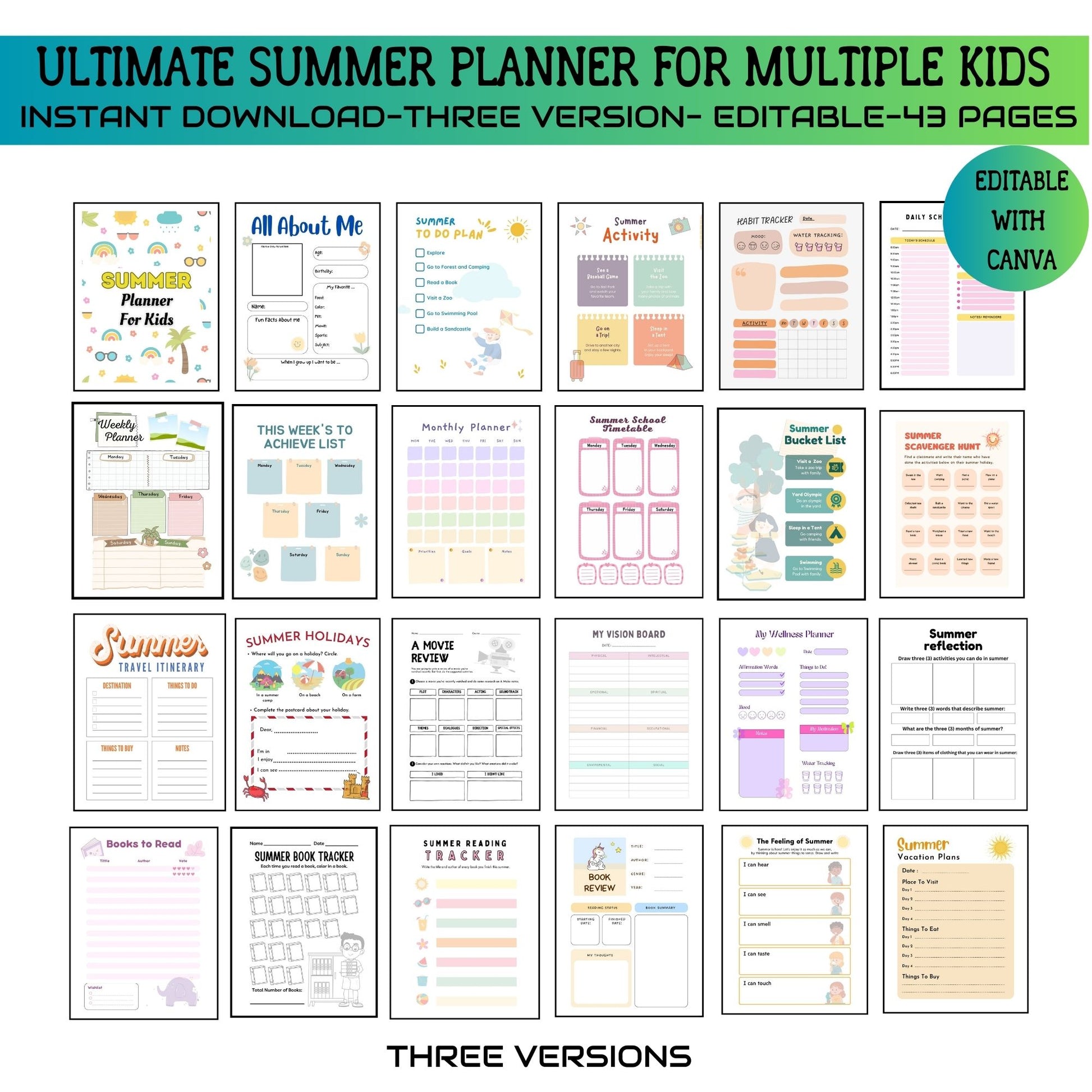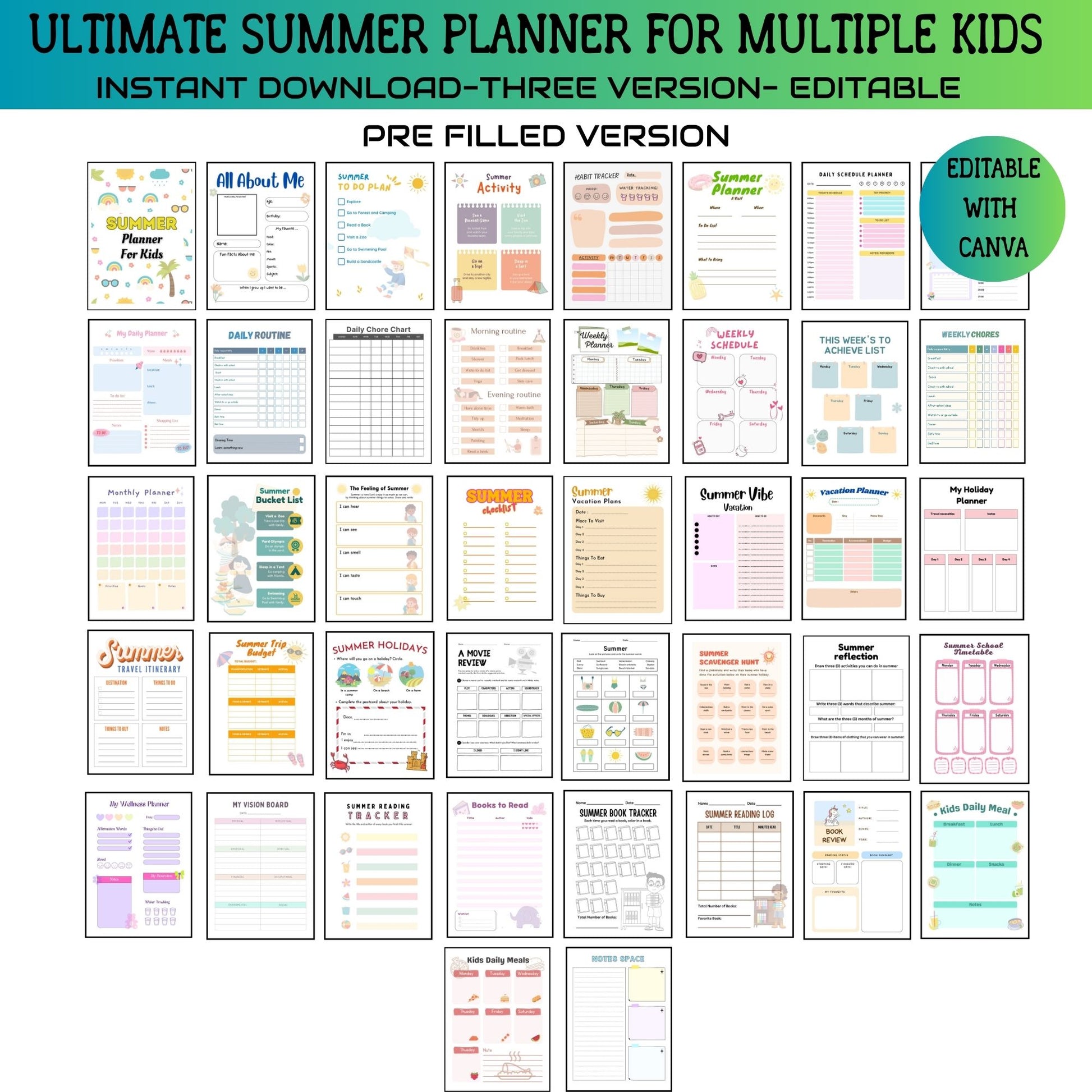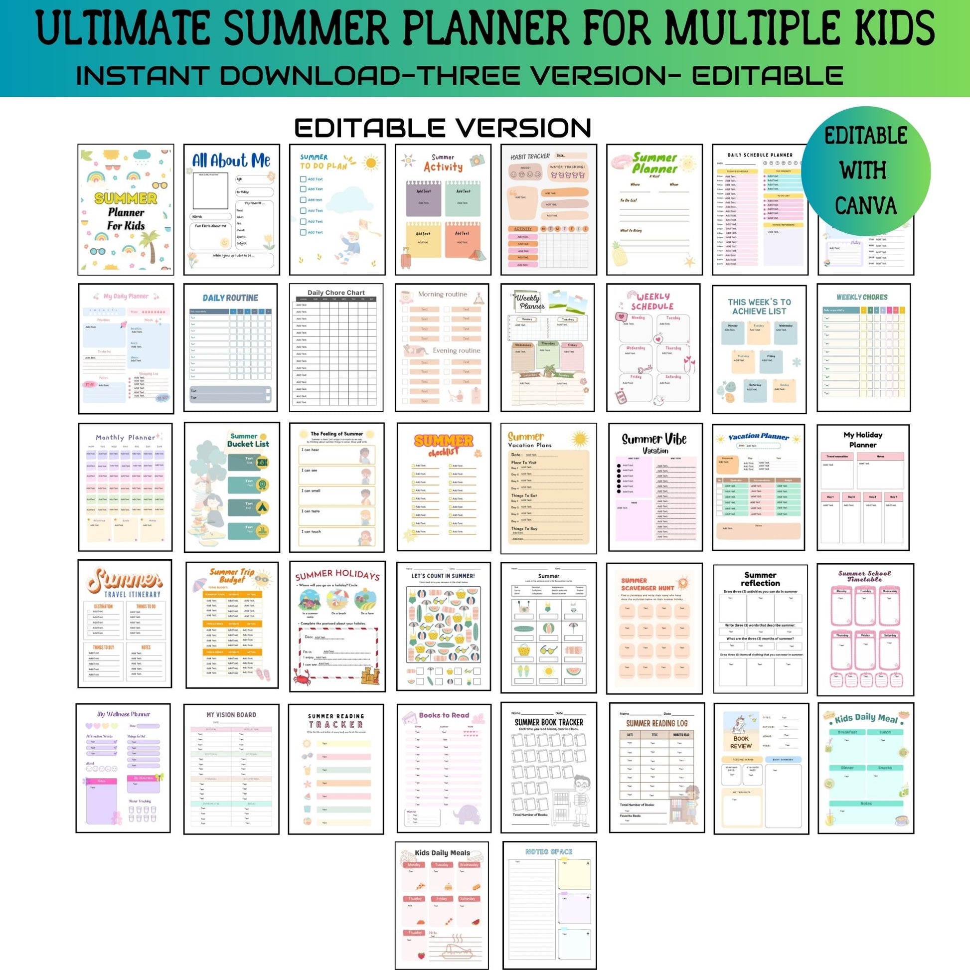 Perfect for families looking to balance fun and productivity, our Printable Editable Summer Planner Bundle is your go-to tool for an unforgettable summer. Download now and start planning your best summer yet!