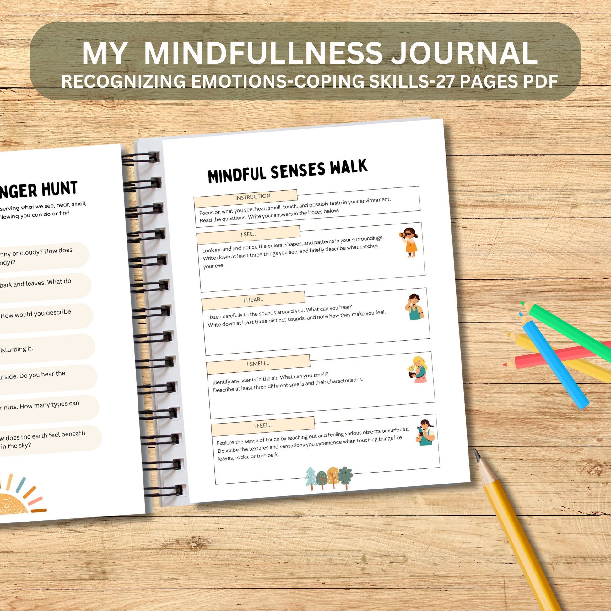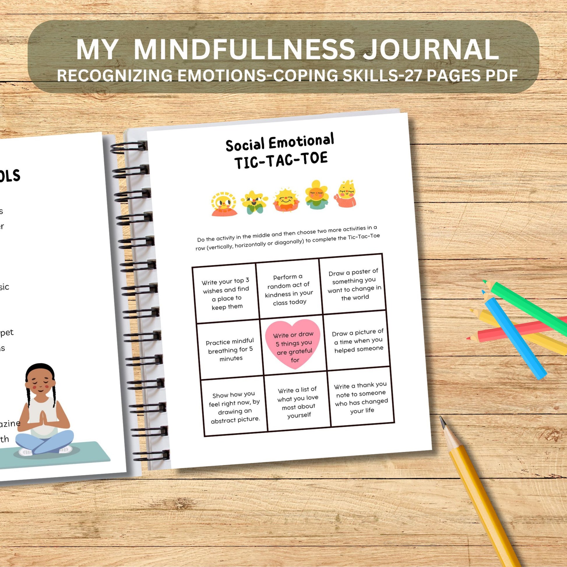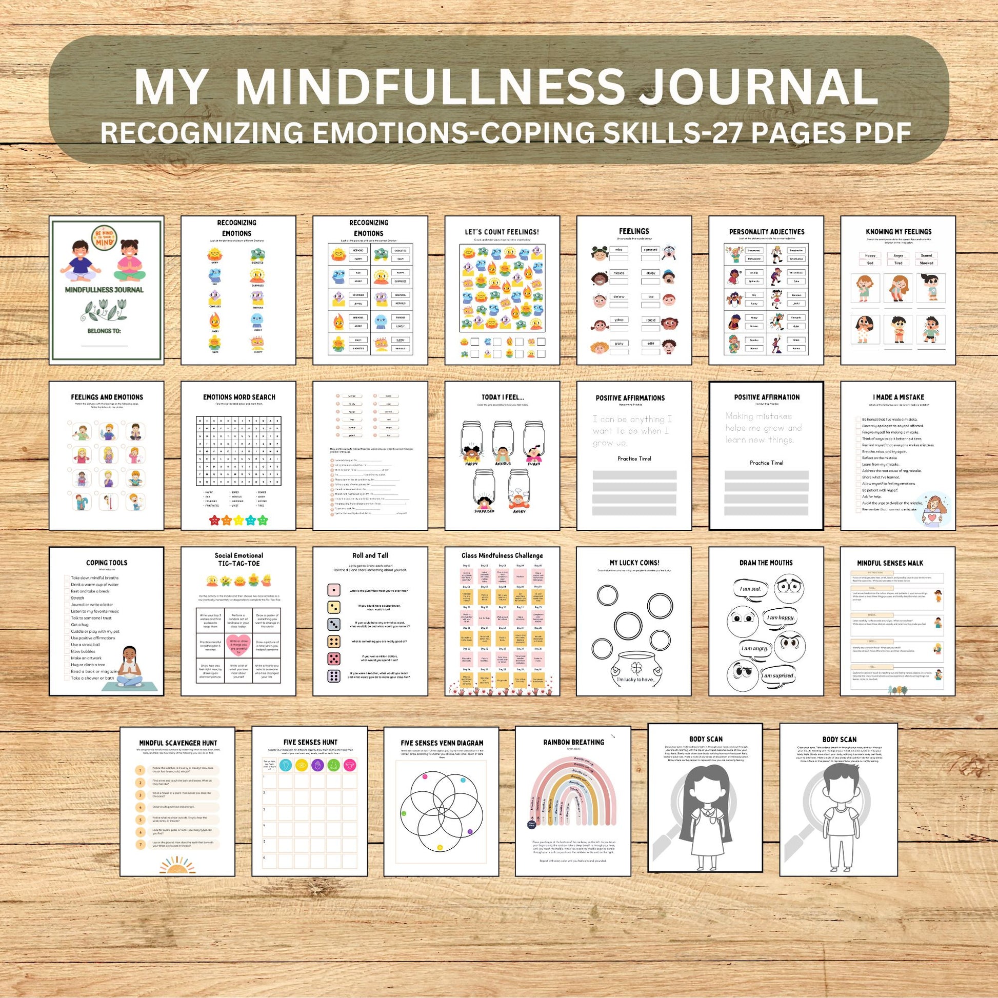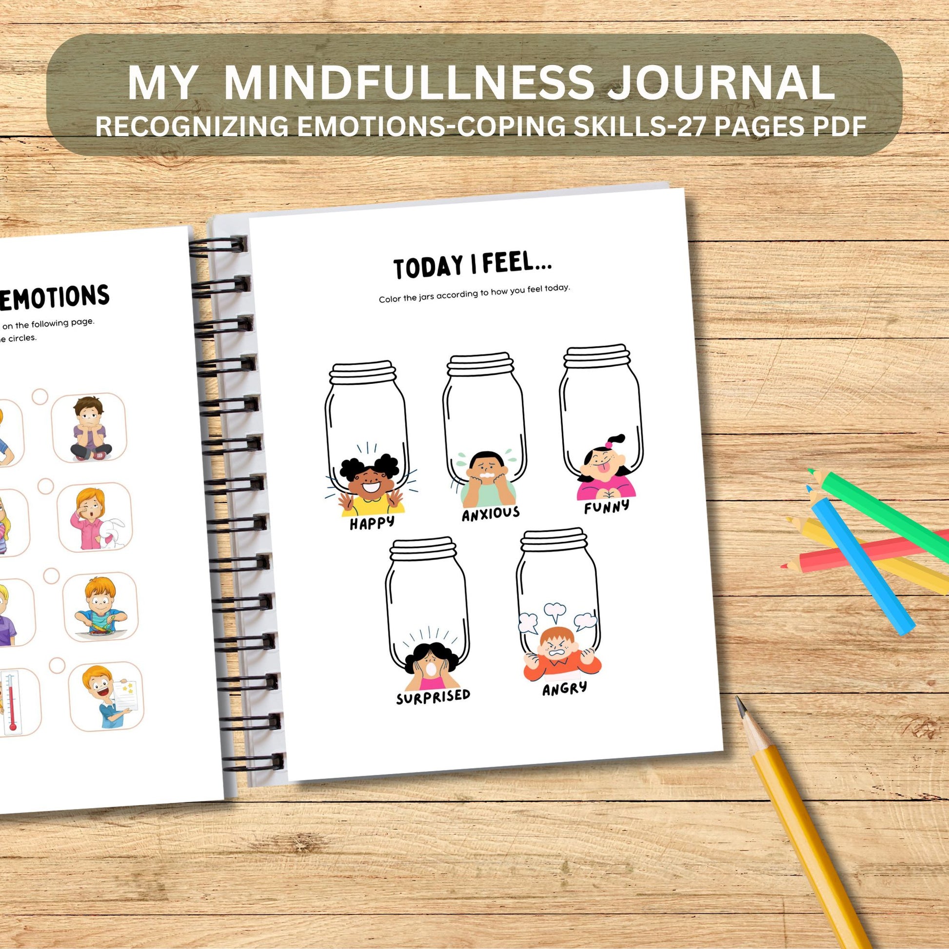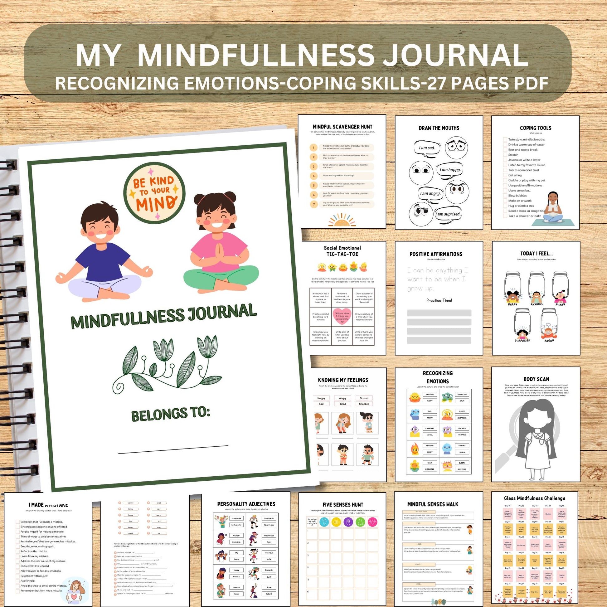 Printable Kids Mindfulness Journal | Mental Health & Gratitude Workbook for Emotions, Self-Esteem and Coping Skills