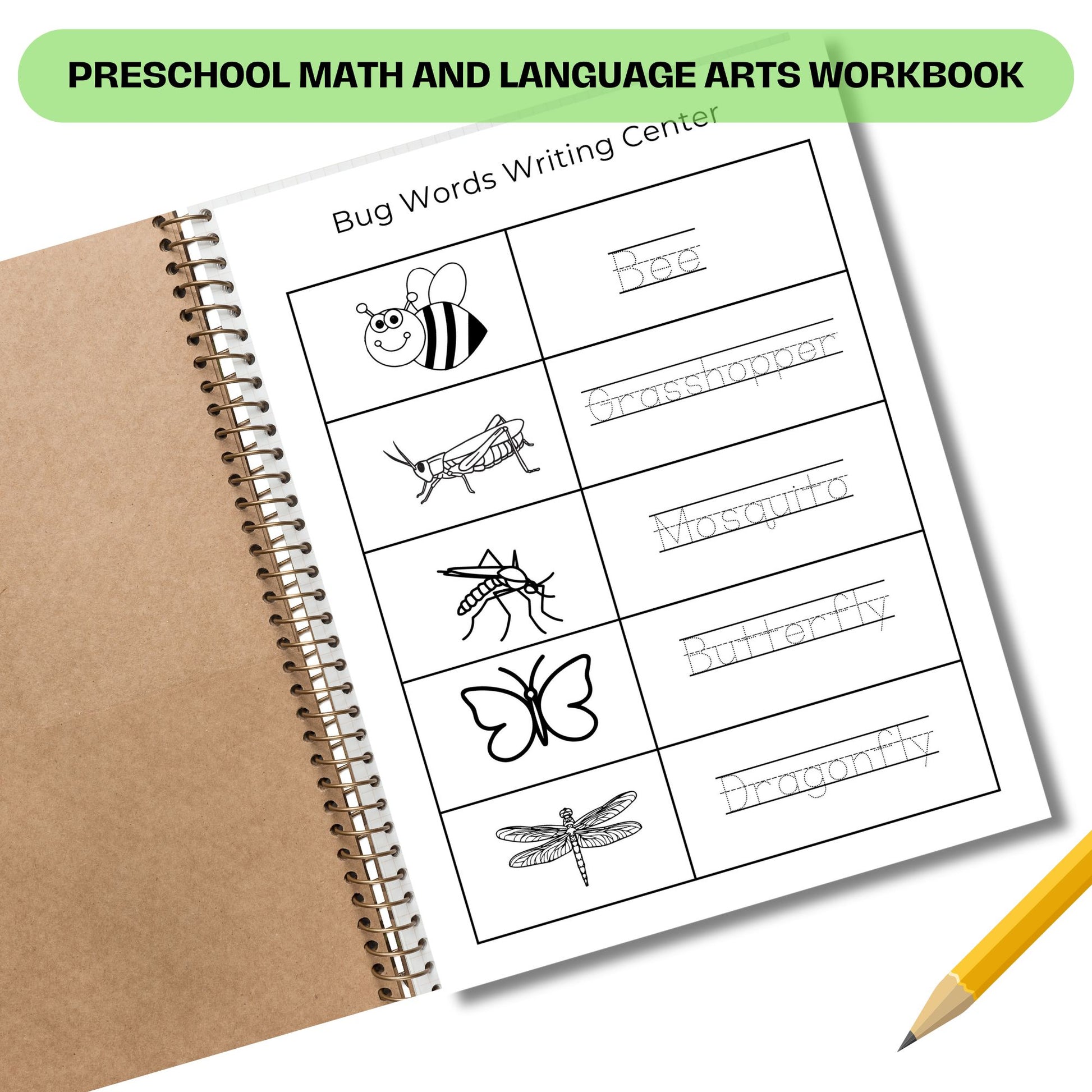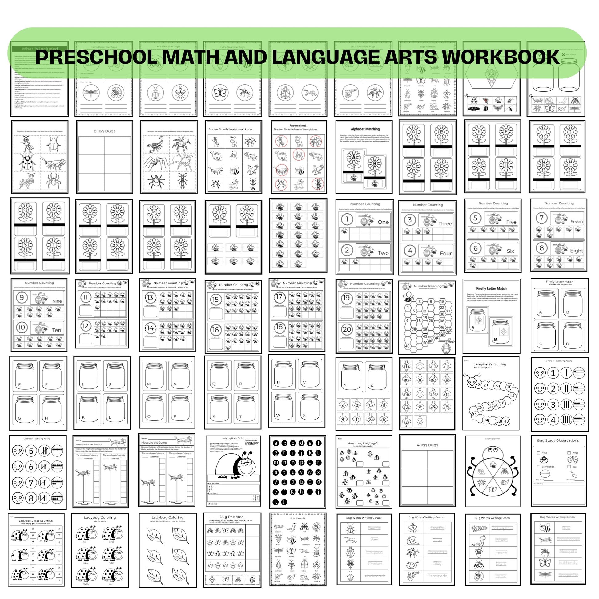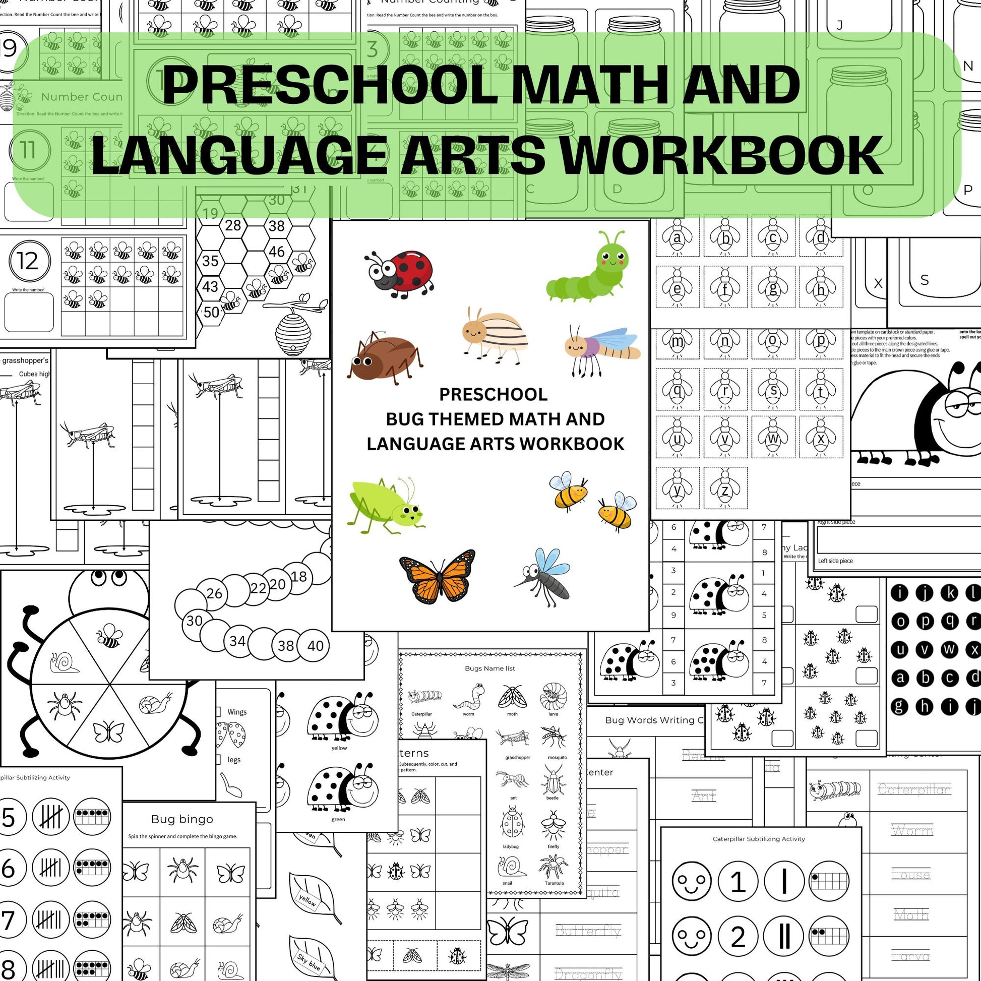 Printable Preschool Workbook | Insect Theme Toddler Activities | Homeschool Worksheets for Math and English