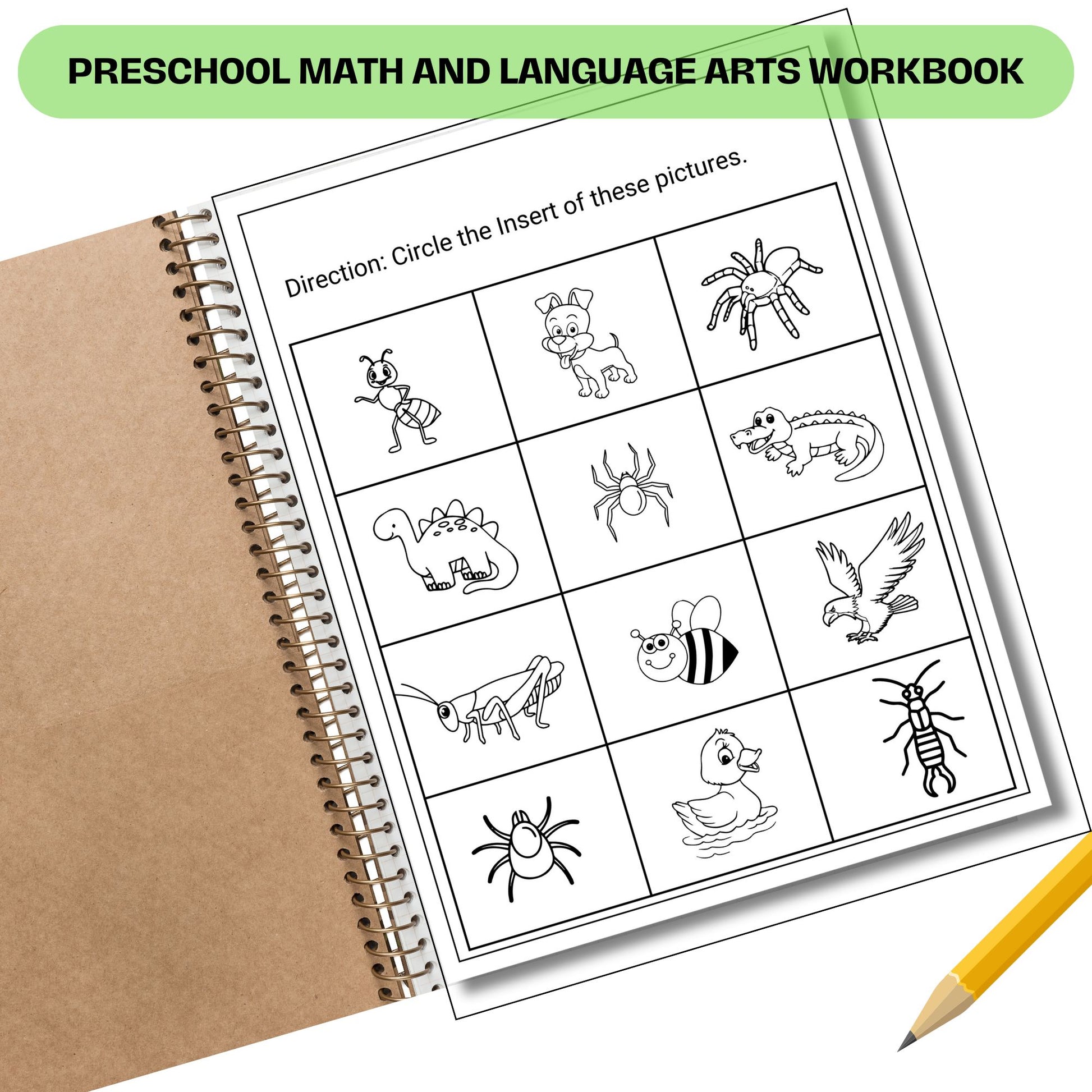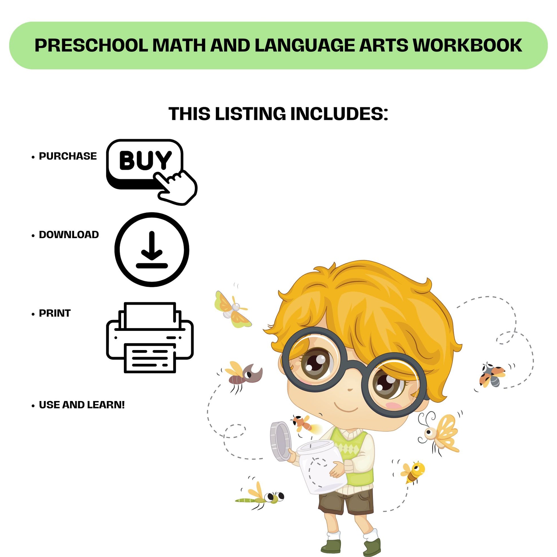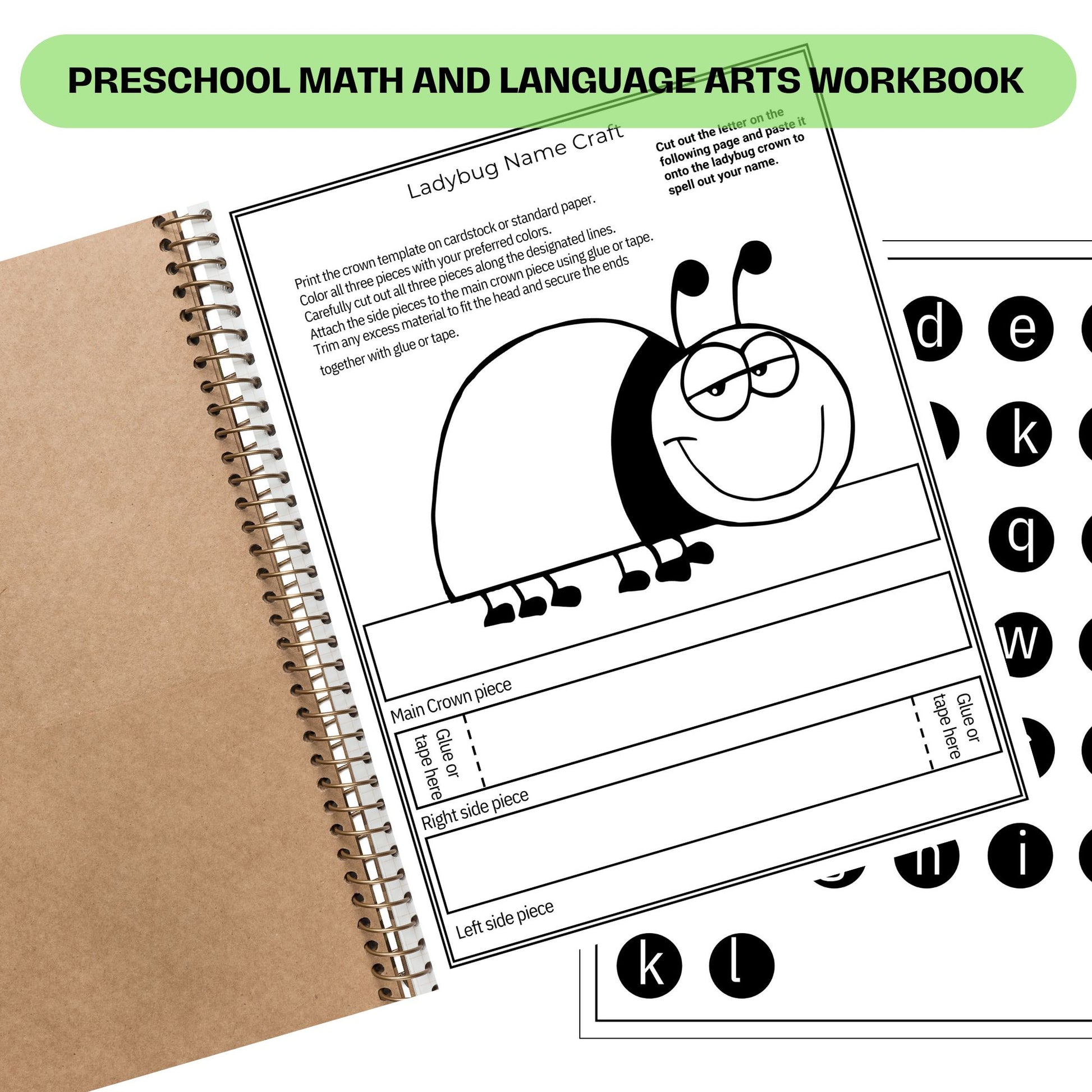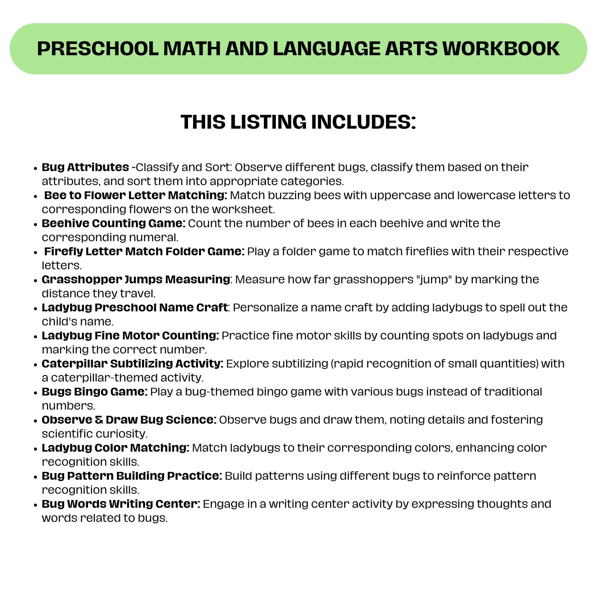 Printable Preschool Workbook | Insect Theme Toddler Activities | Homeschool Worksheets for Math and English