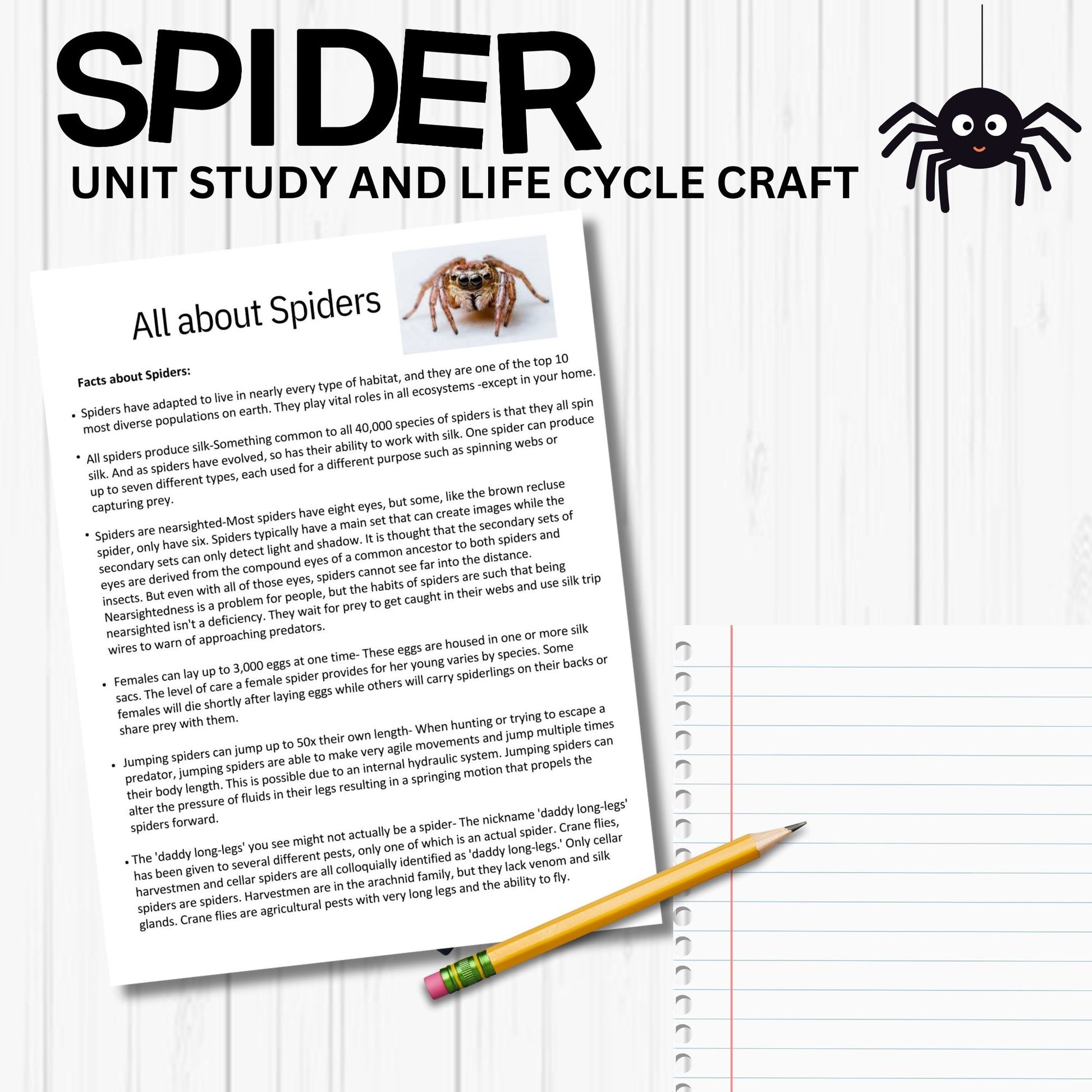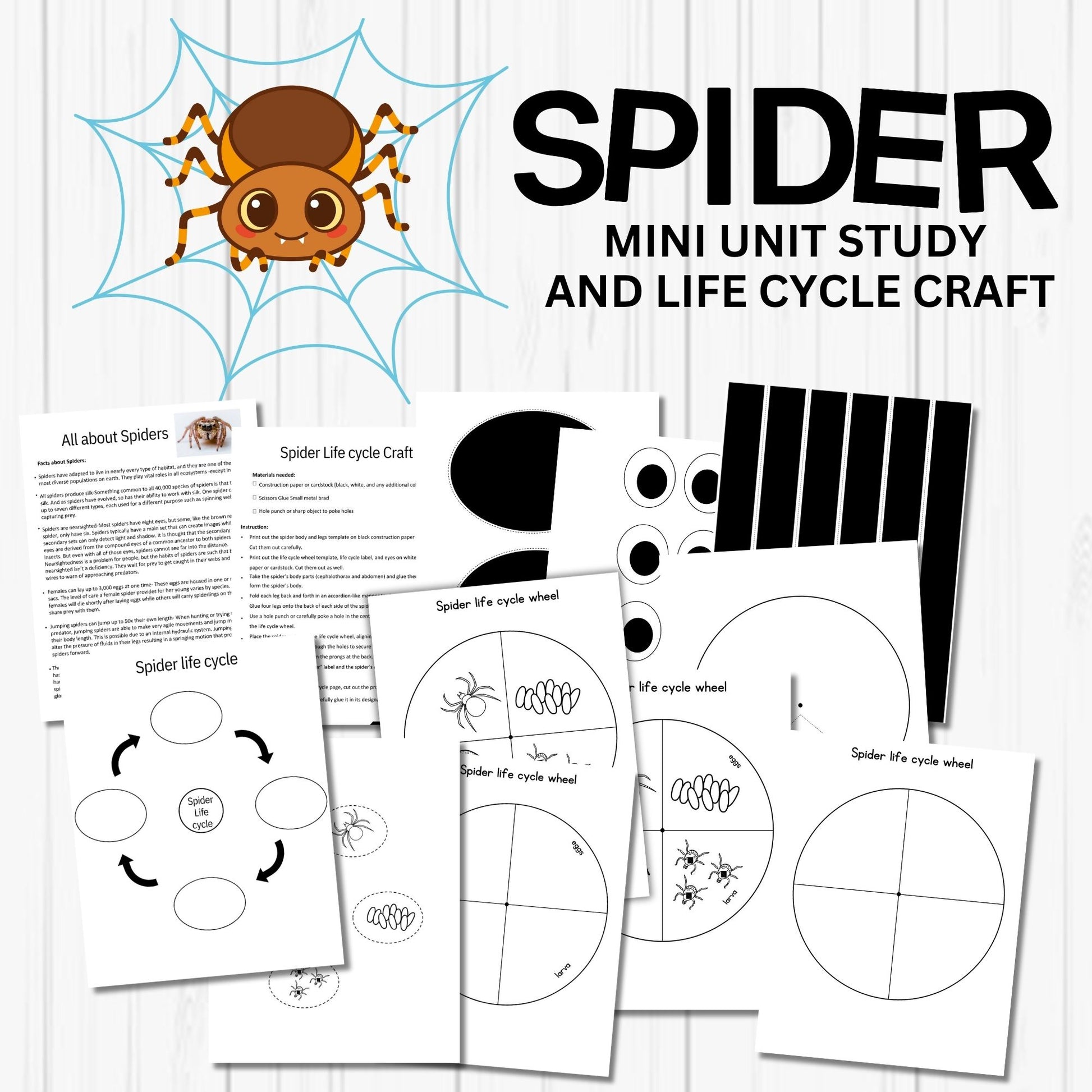 Printable Spider Unit Study for Kids – Life Cycle Worksheets, Craft, and Halloween Homeschool Science Activity