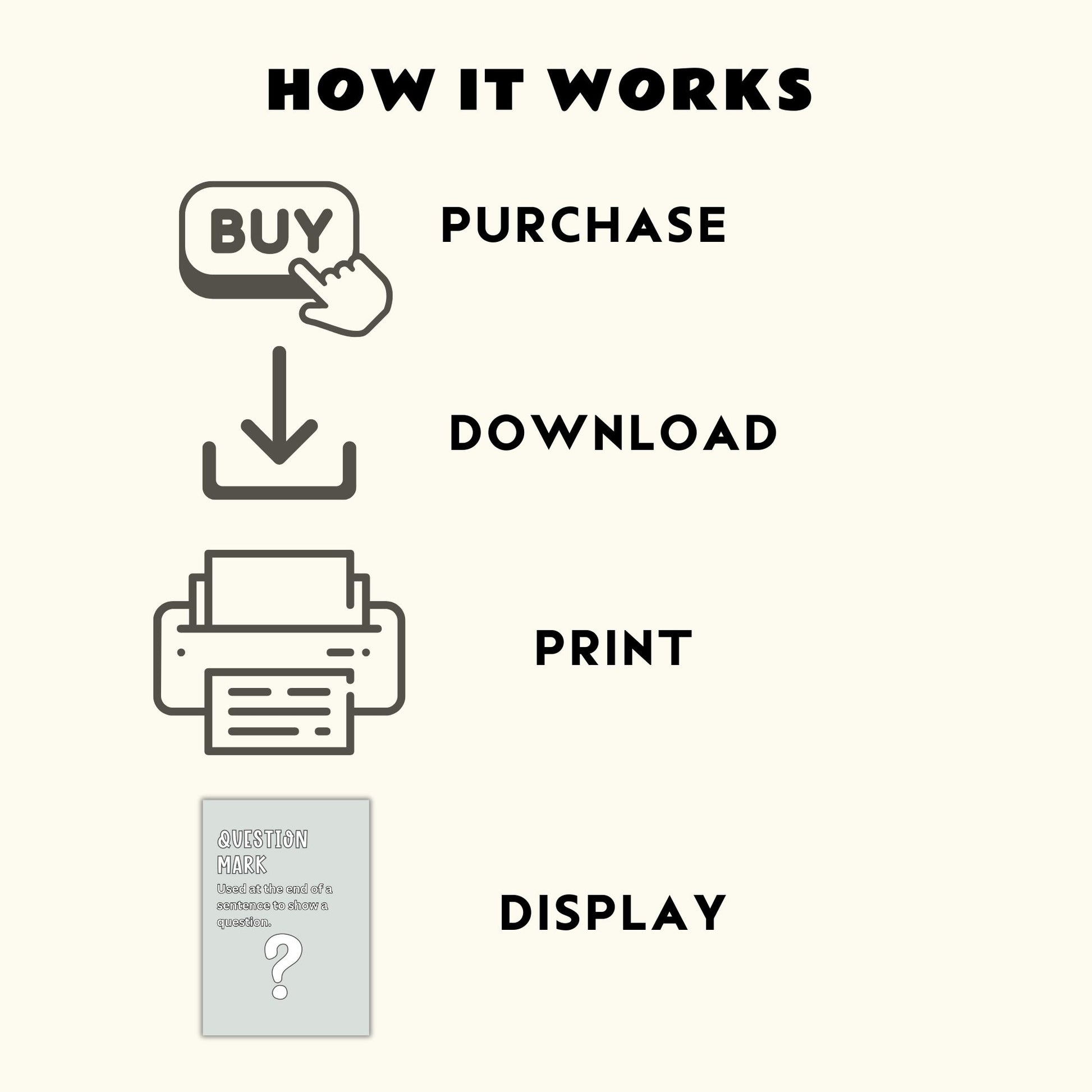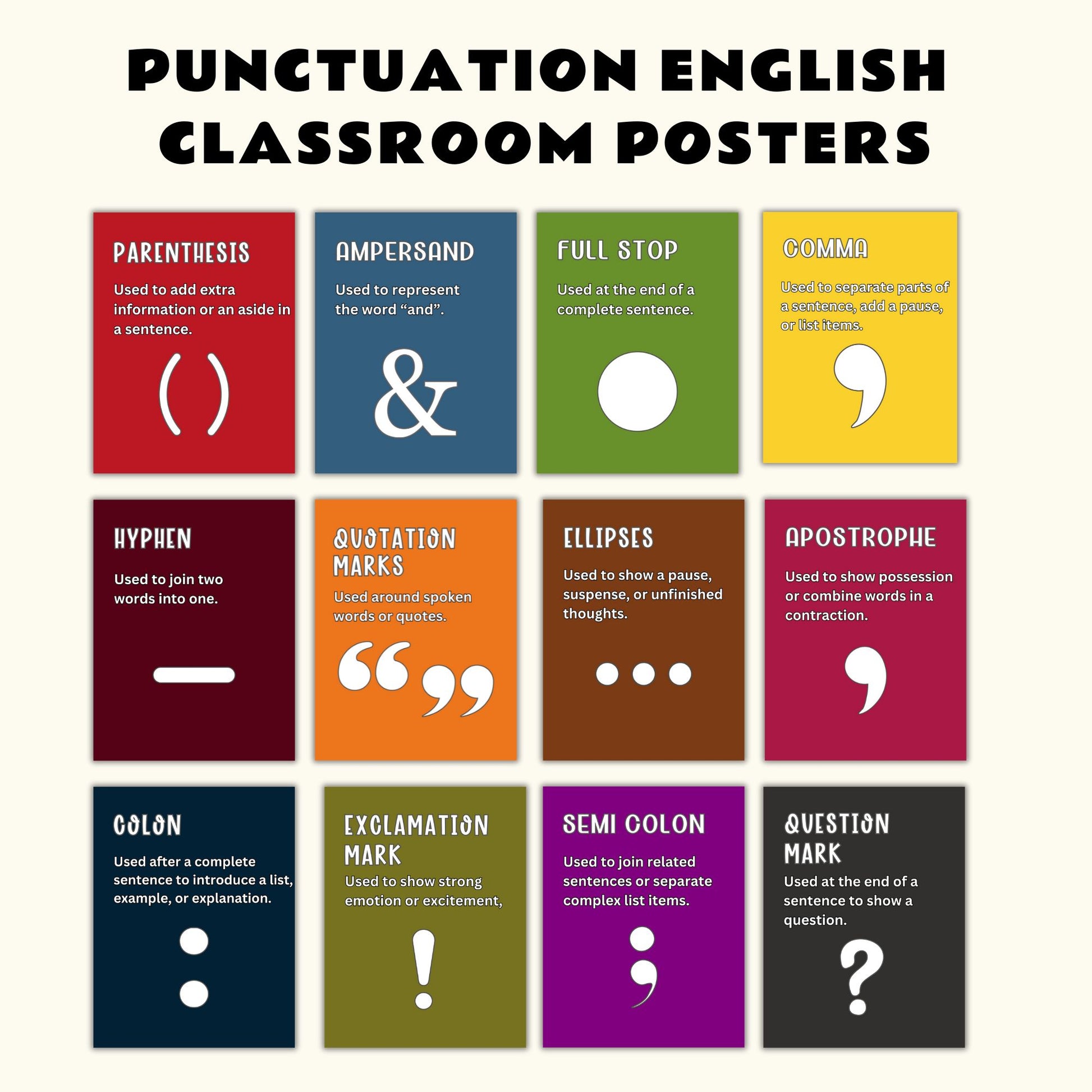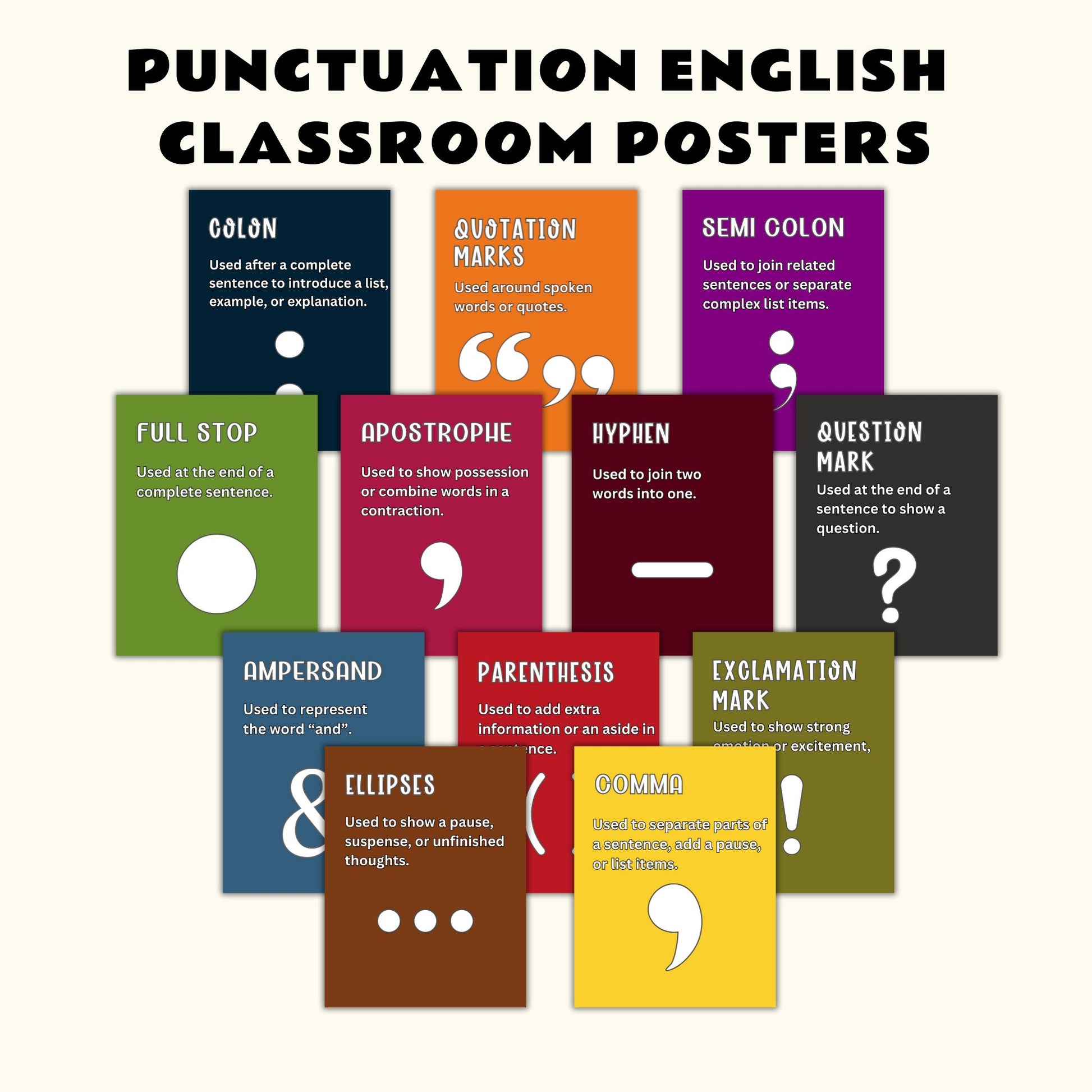 Punctuation Posters Set of 12 | English Classroom Decor | Grammar Posters Bundle | Educational Wall Art