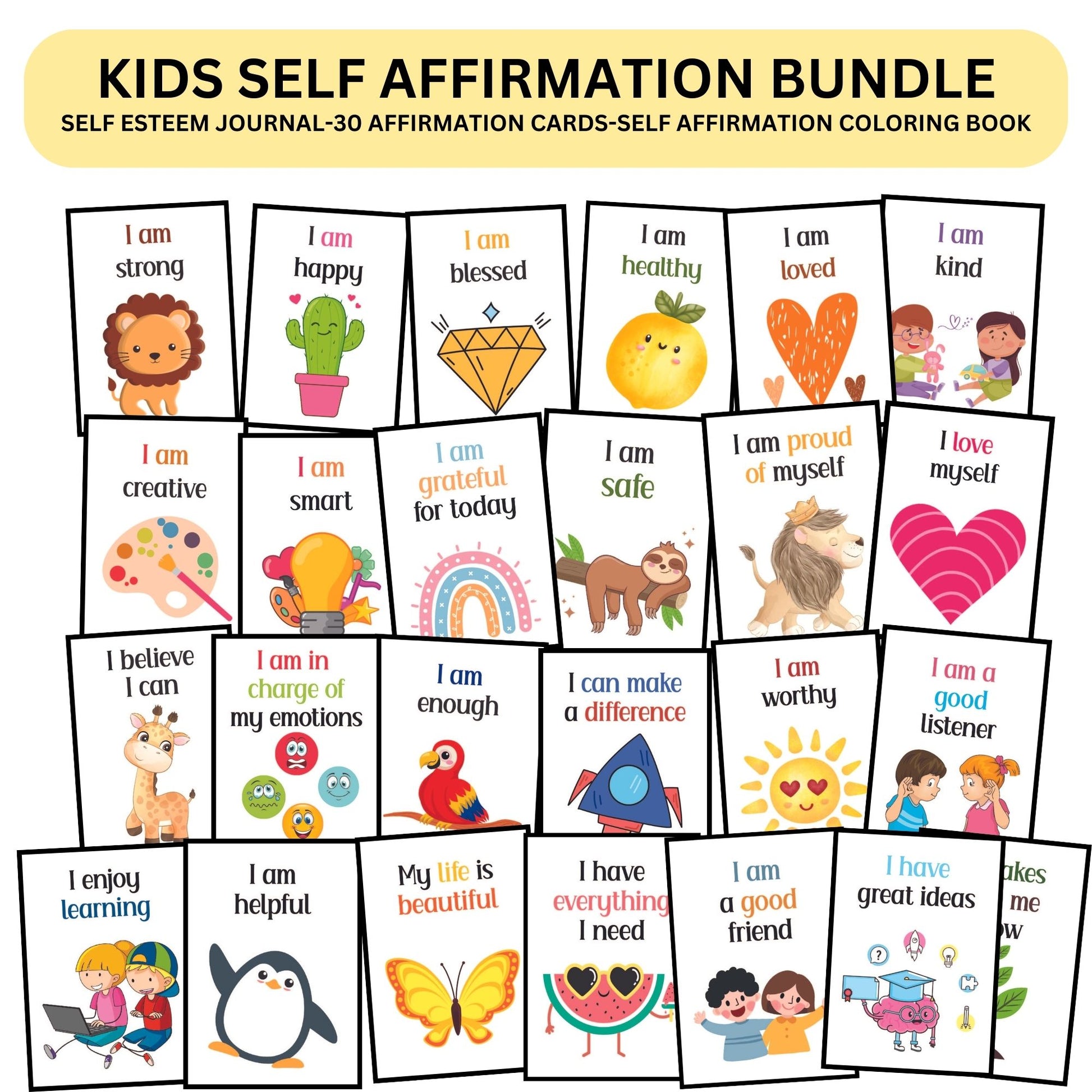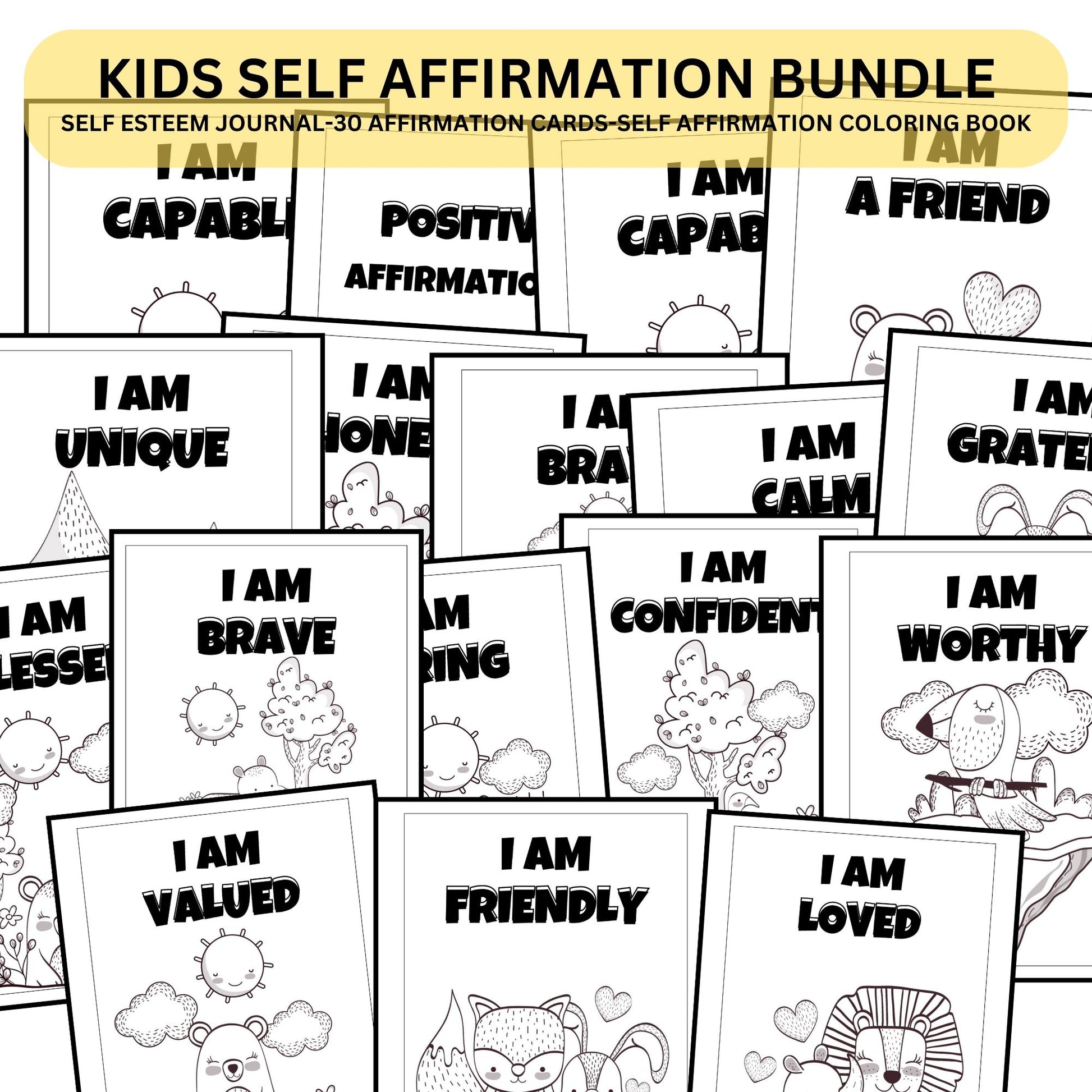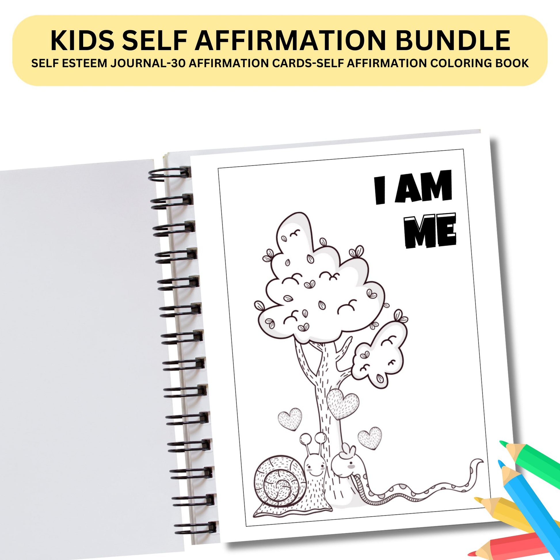 Self worth journal and cards bundle self esteem confidence kids self affirmation self identity mental health CBT affirmation coloring kids