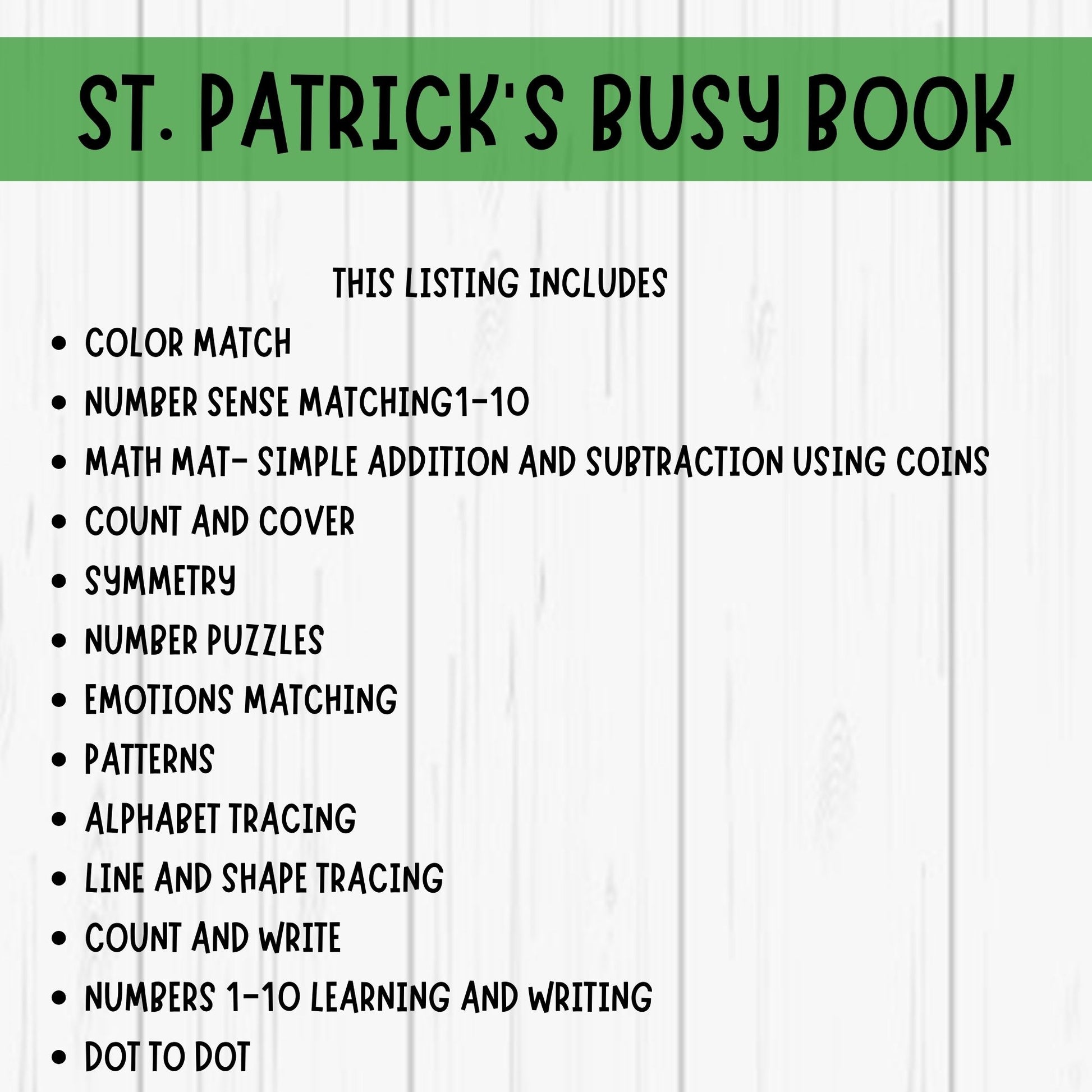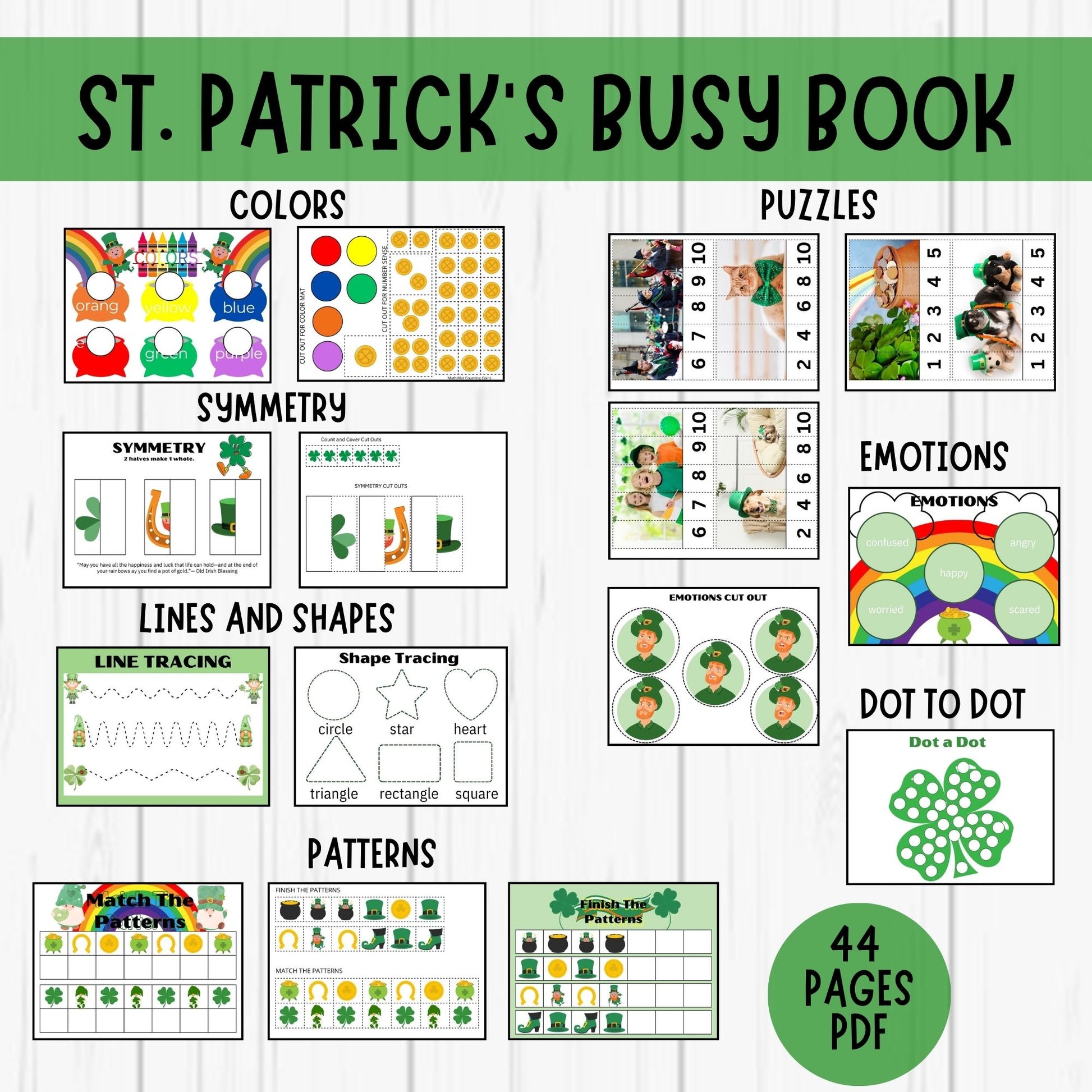 St Patricks Day Busy Book Printable Toddler Learning Binder Preschool Printables Homeschool Activity Book Educational Worksheets for Kids