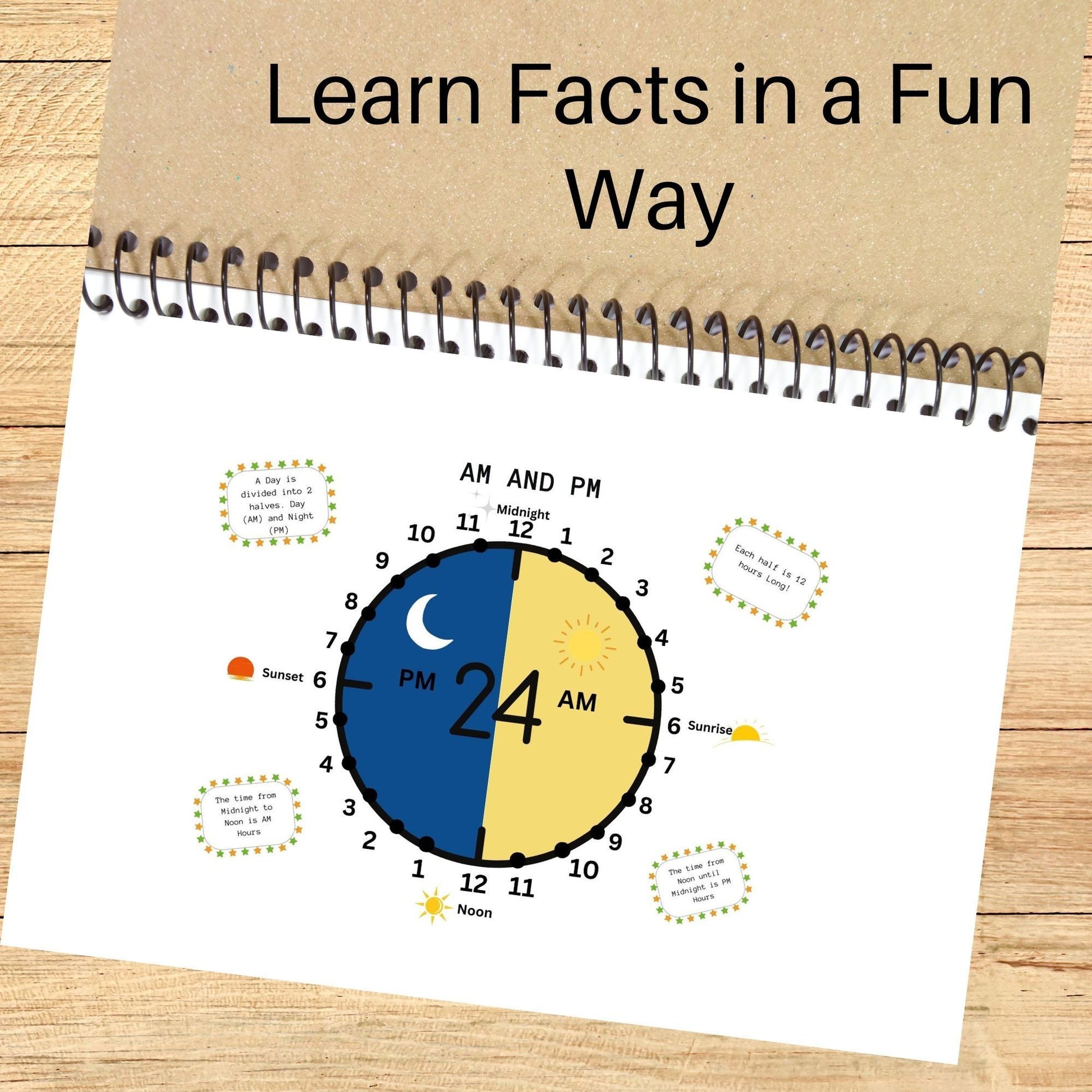 Telling Time Busy Book | Learn to Tell Time | Analog Clock, AM/PM & 24-Hour Day Activities for Kids
