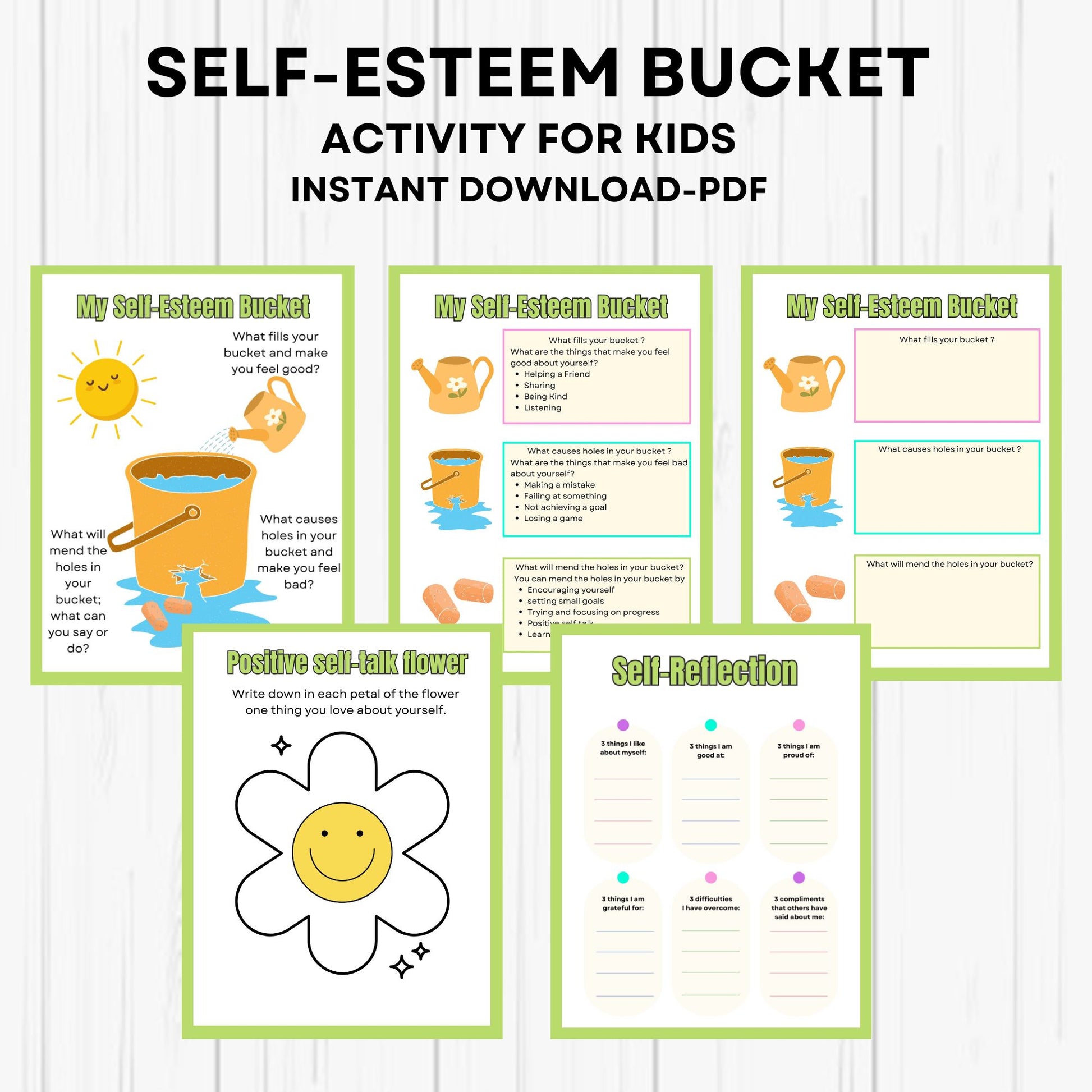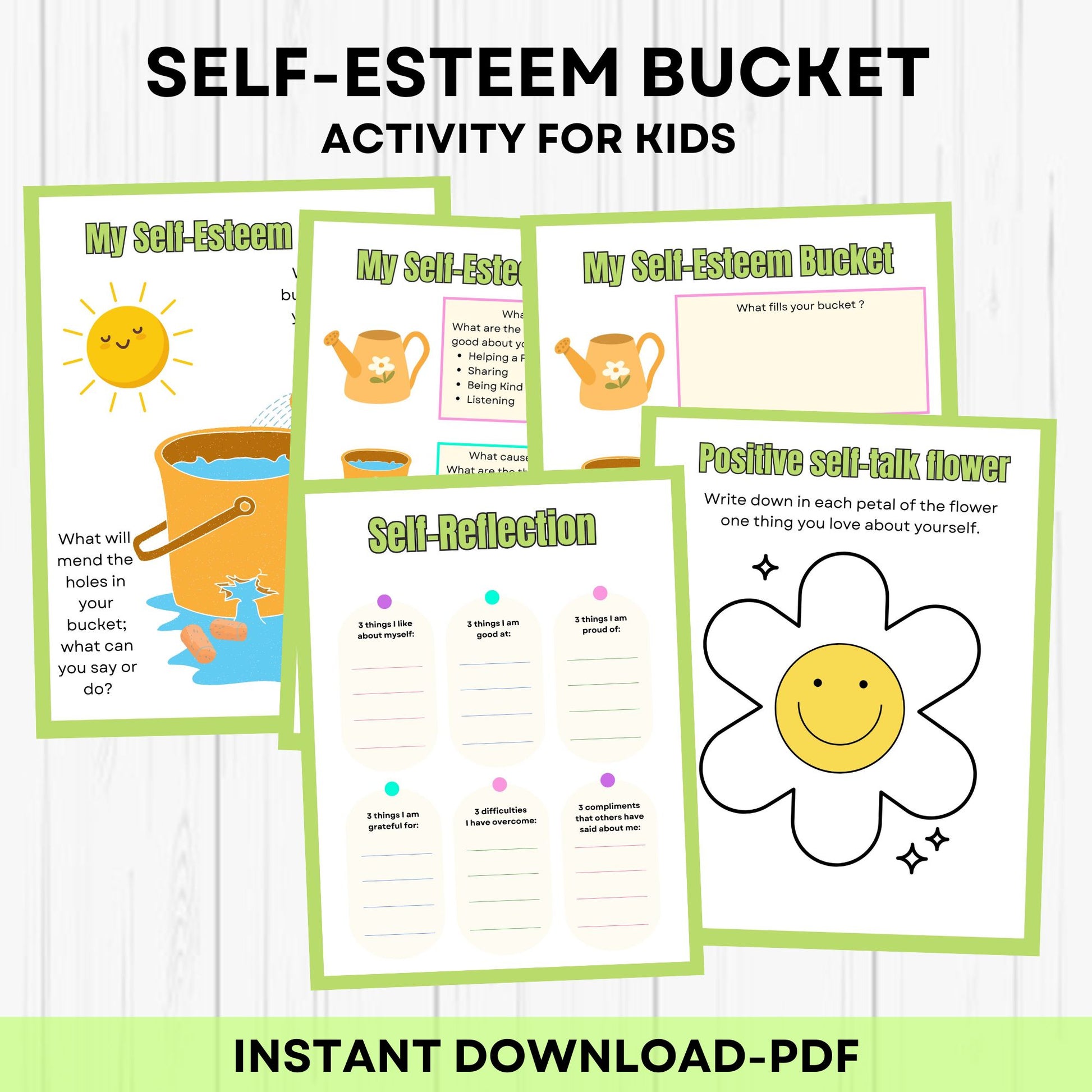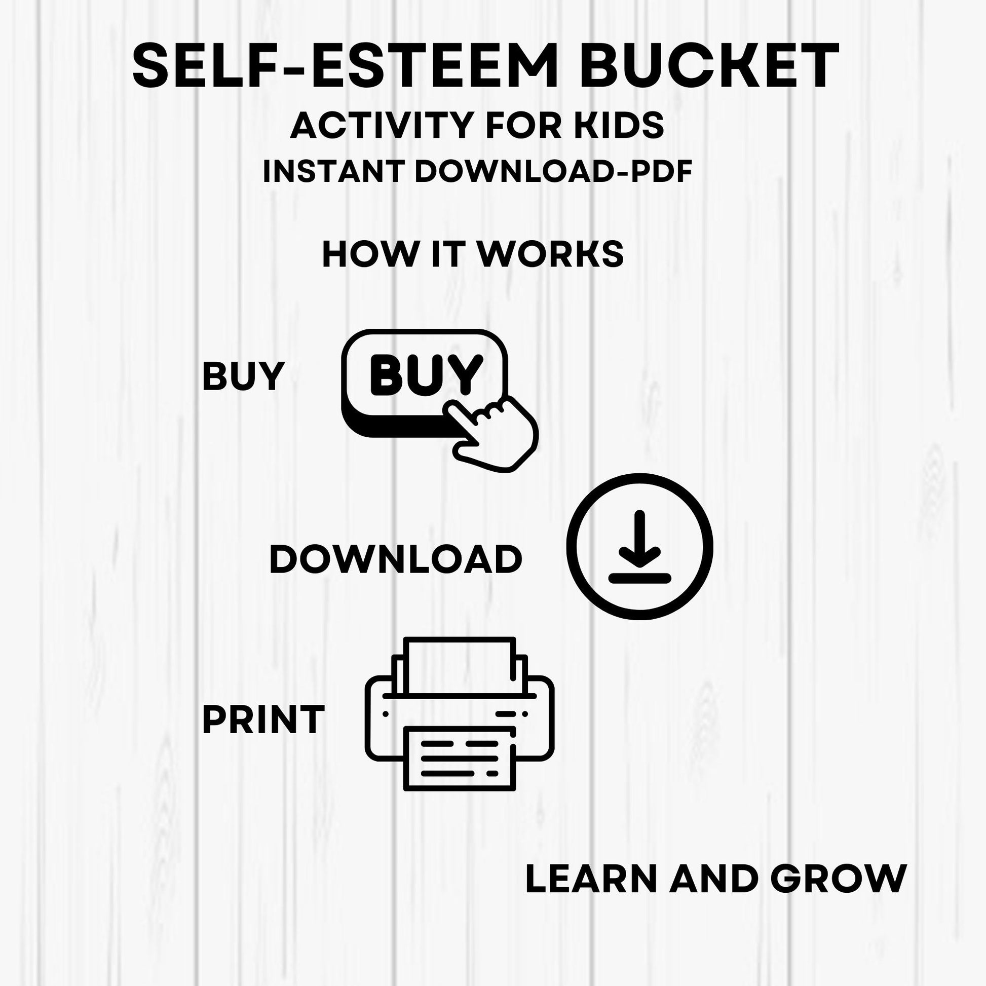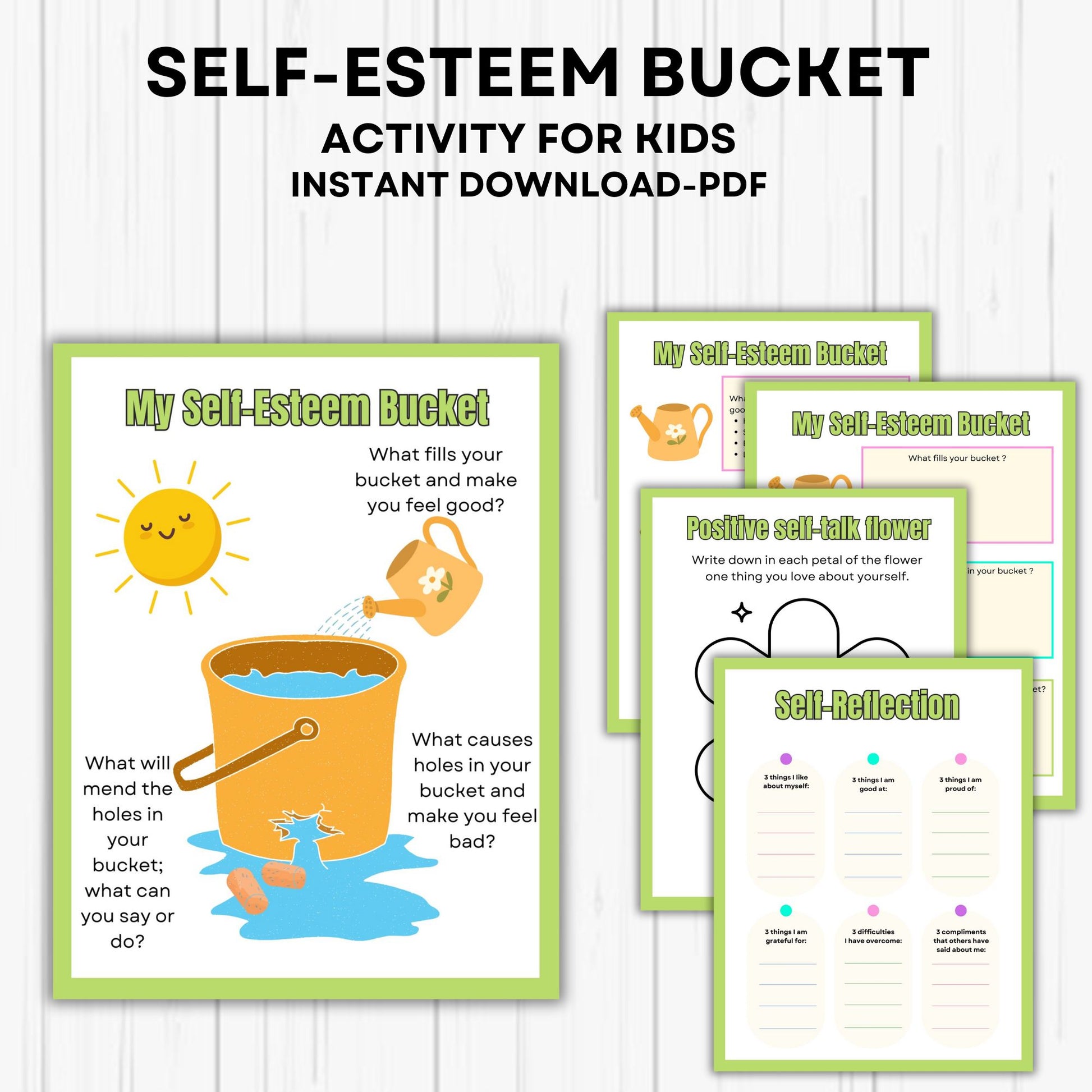 The self esteem bucket self worth self love confidence activity for kids therapy worksheets affirmations school counselling resources SEL