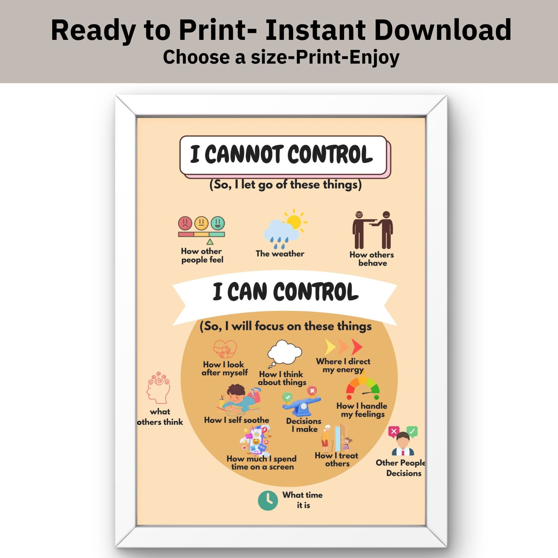 Empower yourself and others with our "Things I Can & Cannot Control" poster—an essential tool for cultivating mindfulness and emotional resilience.