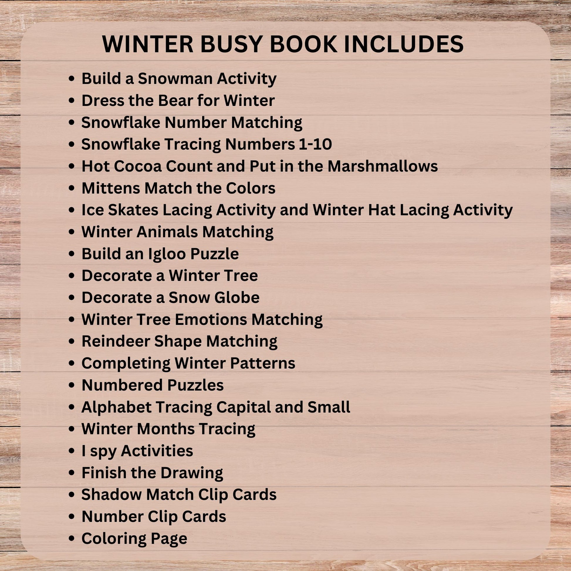 Looking for a busy book that will keep your toddler entertained during the winter? Look no further than our winter busy book! This fun and educational book is perfect for toddlers who love to learn and explore. The busy book has loads of interactive learning activities, all of which are designed to keep your little one occupied and learning. Plus, the printable version makes it easy to keep track of your child's progress, making this a great tool for homeschooling parents too!