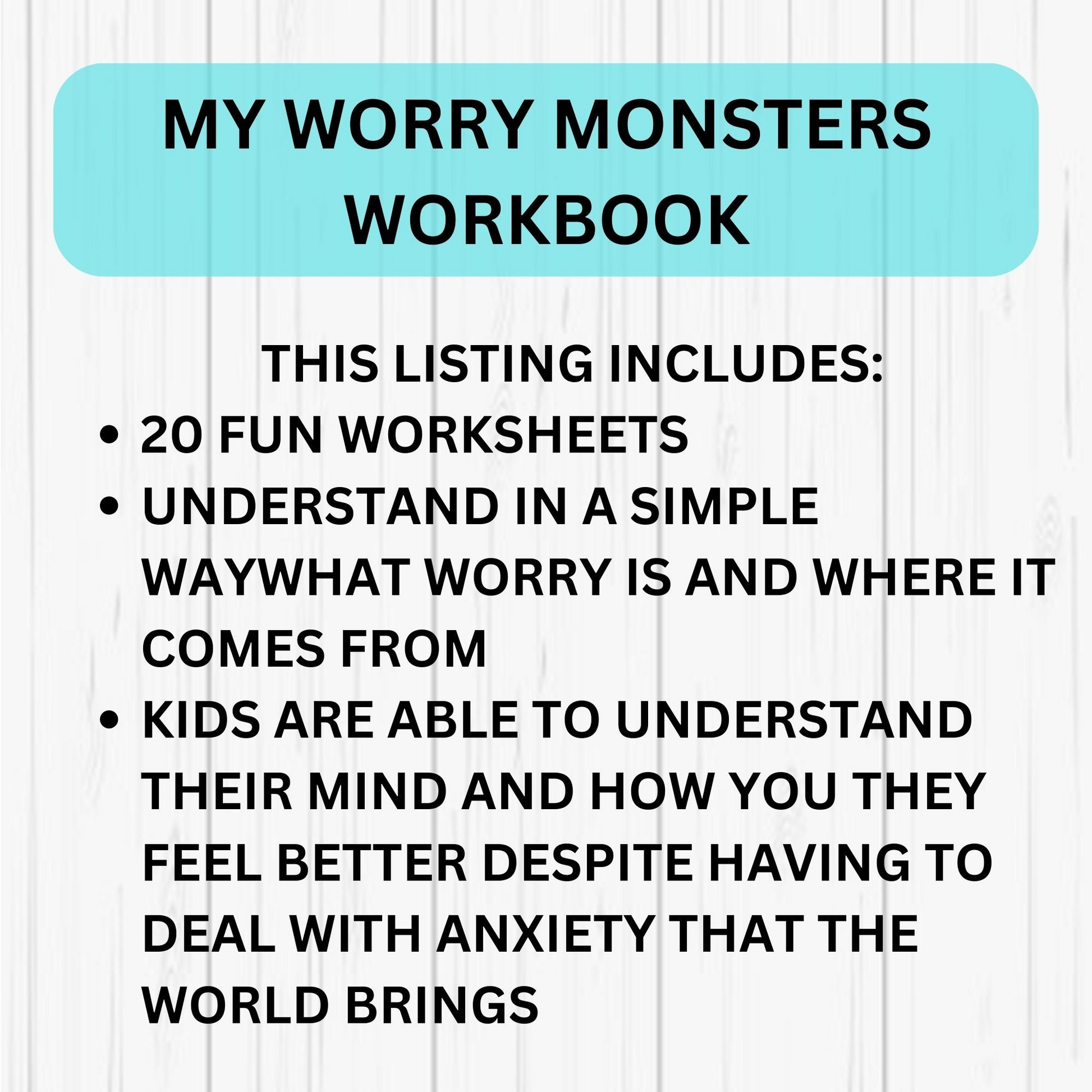Worry Monster Anxiety Workbook for Kids | CBT Worksheets & Coping Skills | Printable Therapy Resources for Children | School & Home Use